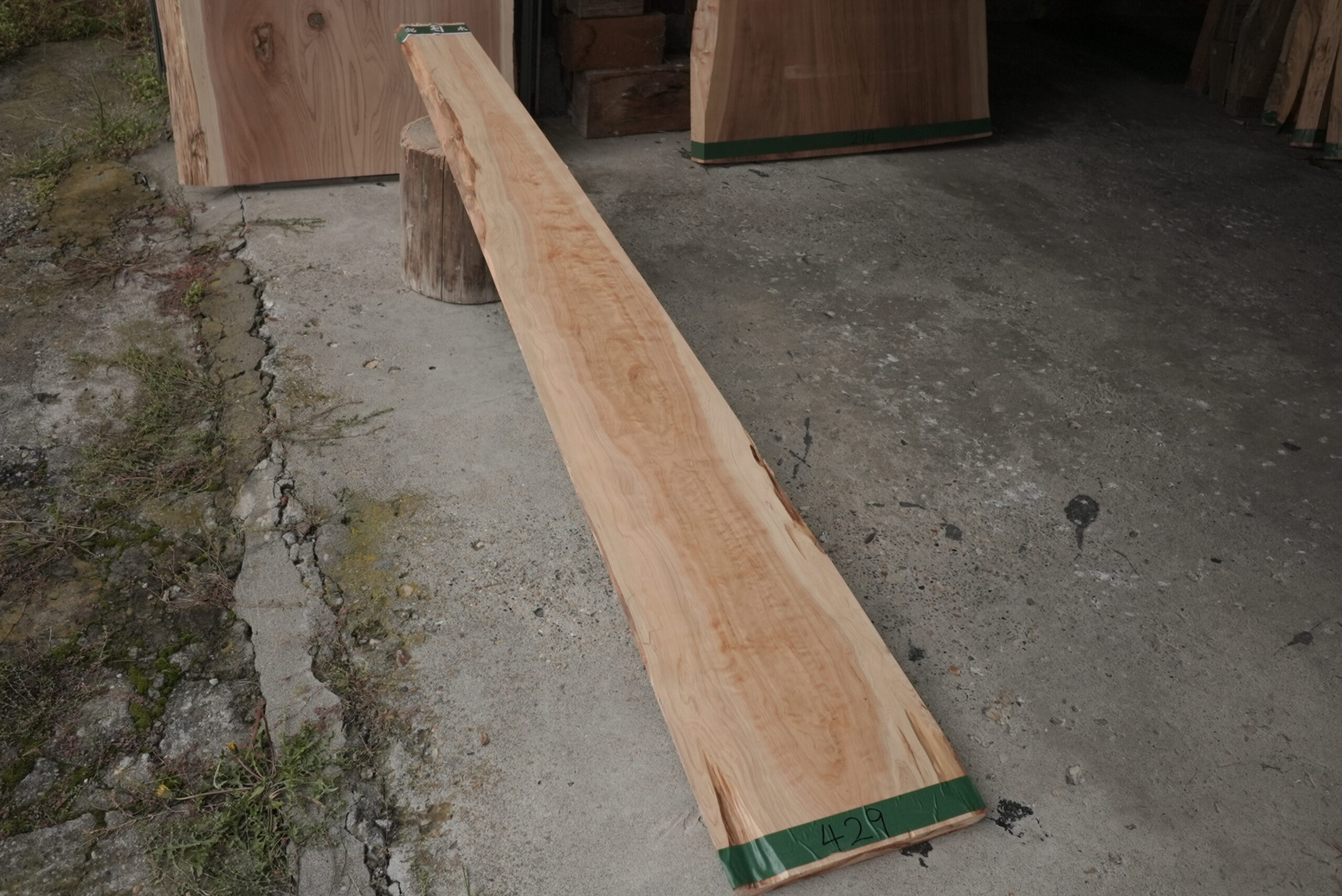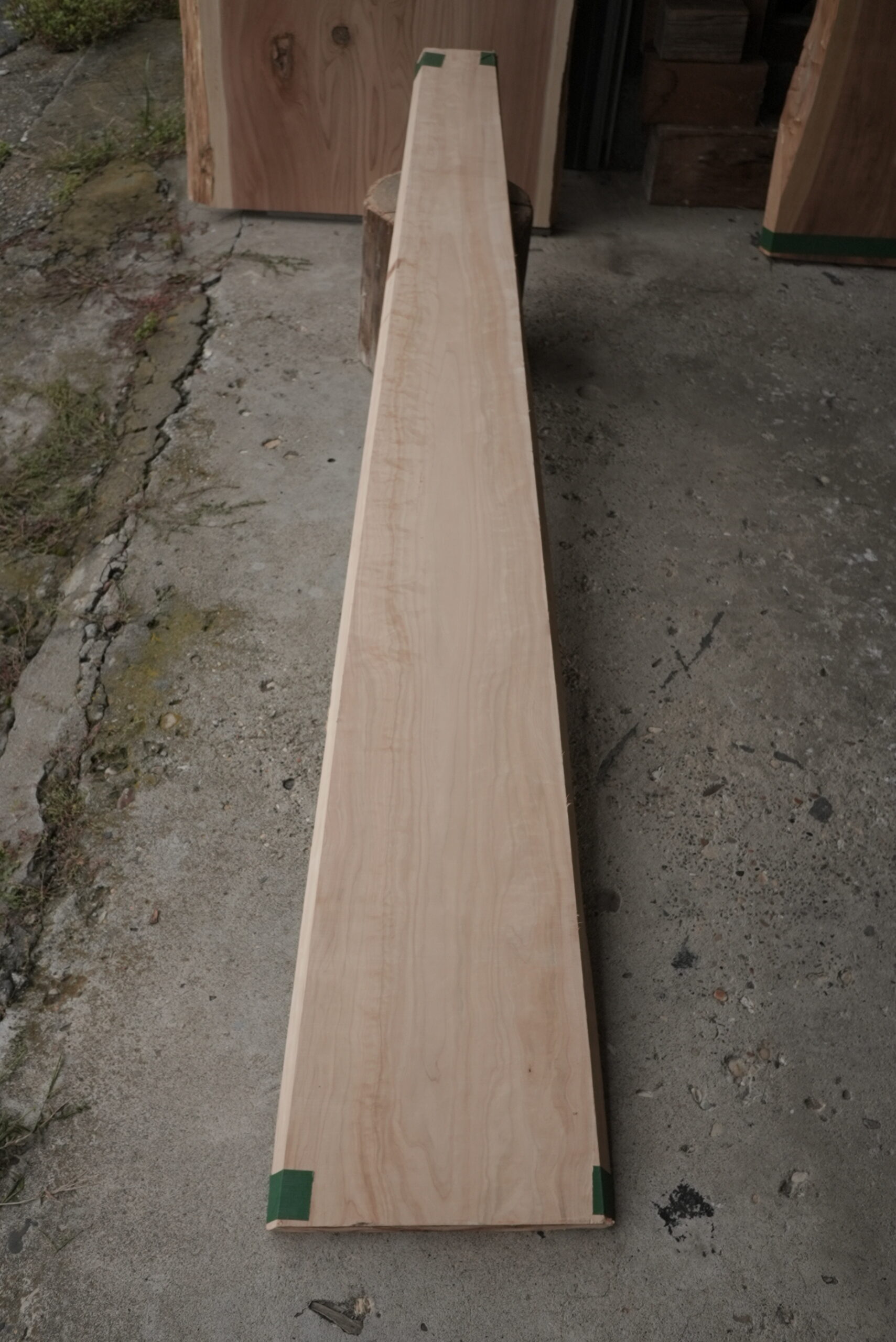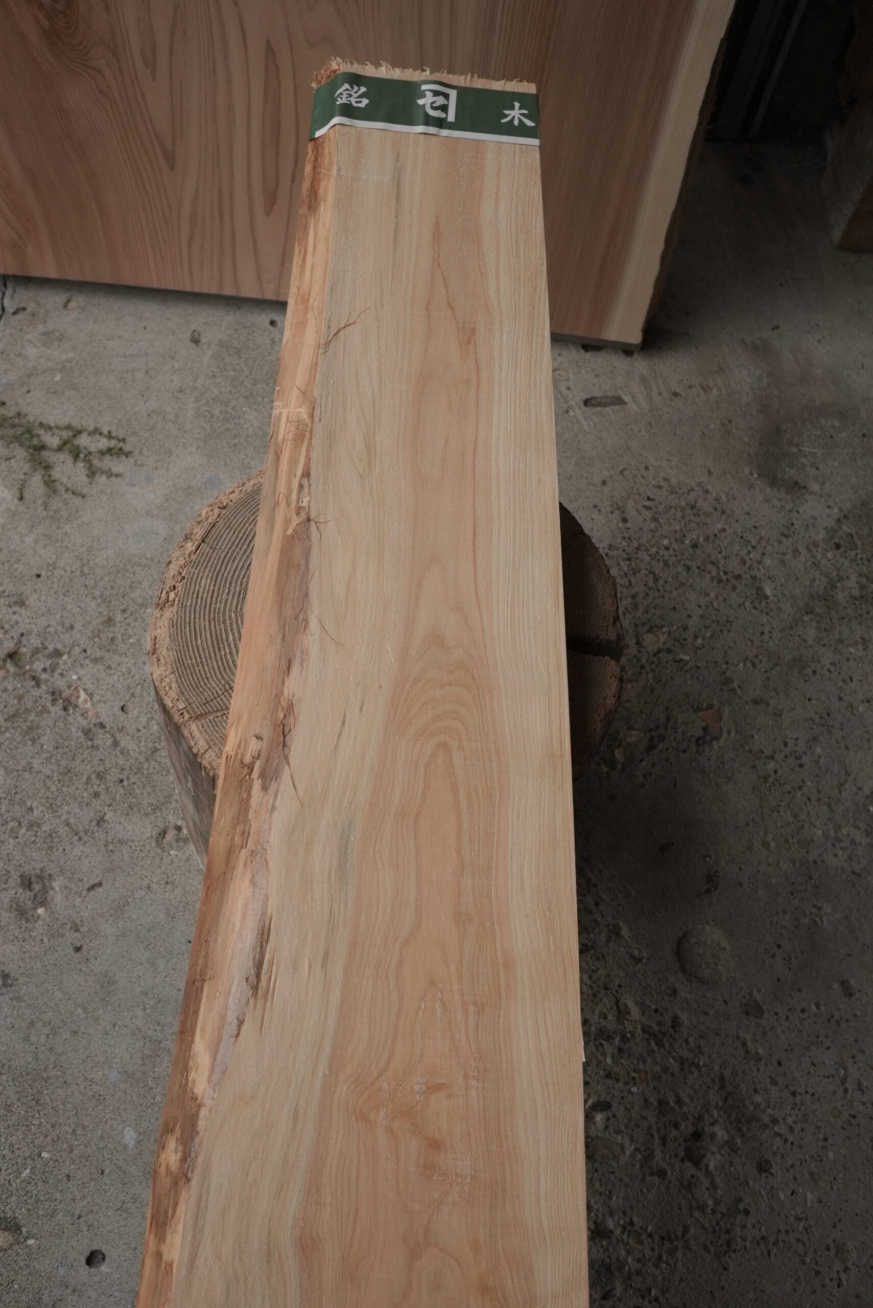 ヒノキ一枚板です。ヒノキの香りがたまりません。幅は狭いですがさざ波杢が付いています。幅サイズは耳を含まない内々サイスです。インパクトのある一枚板ですのでオブジェ、各製品作りにも対応が出来ると思います。表面に割れ止めボンドを塗布しています。プレーナー掛け、オイル塗装をすると素晴らしくなります。