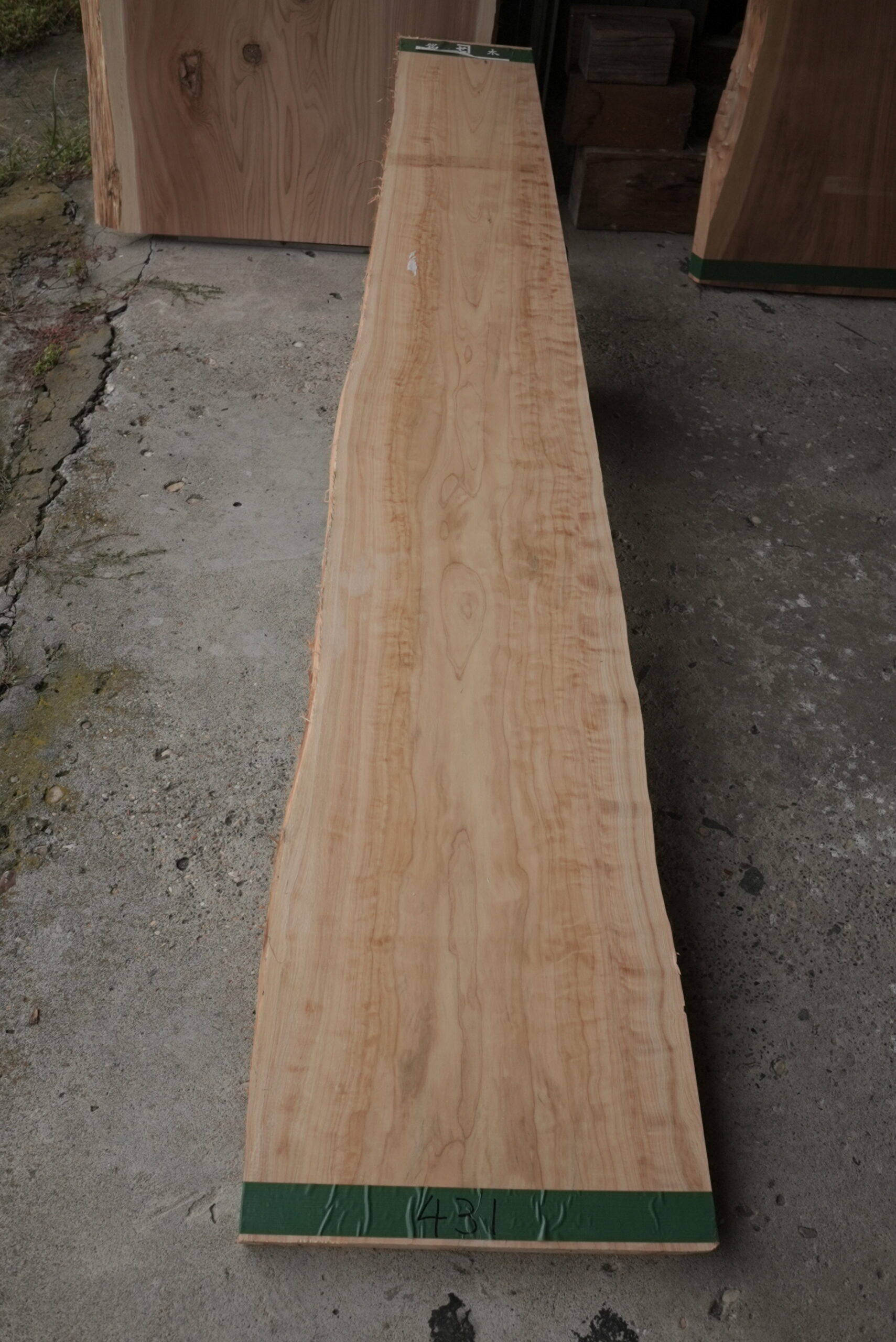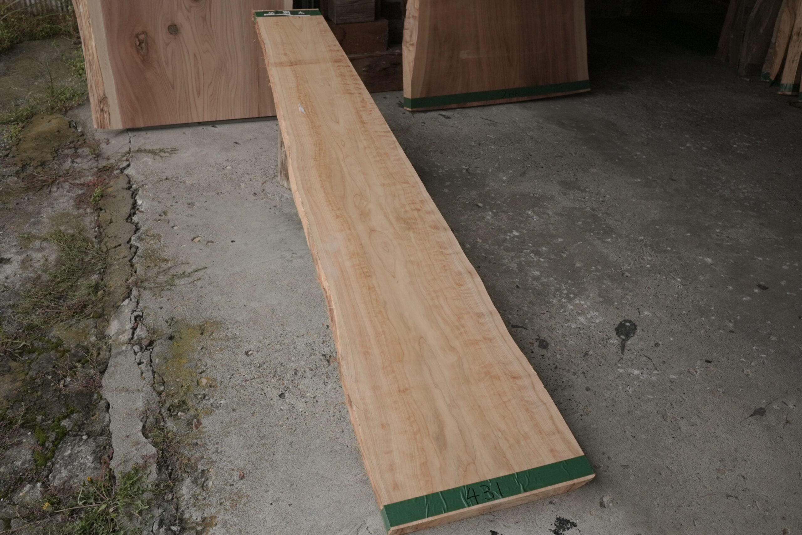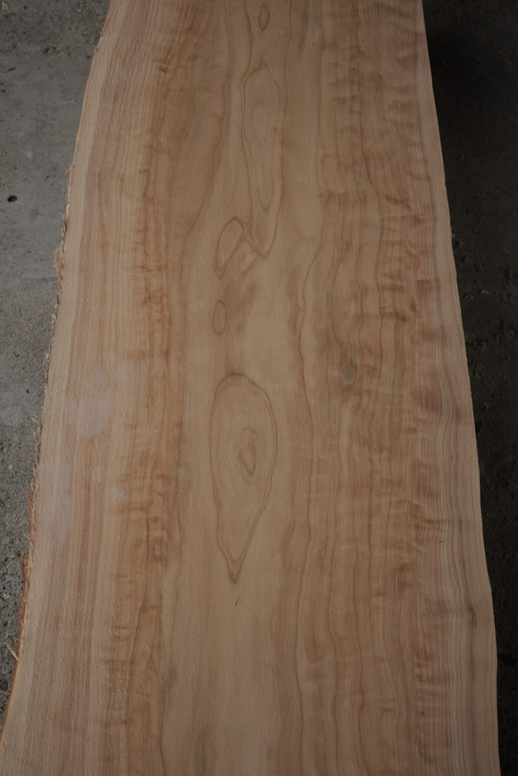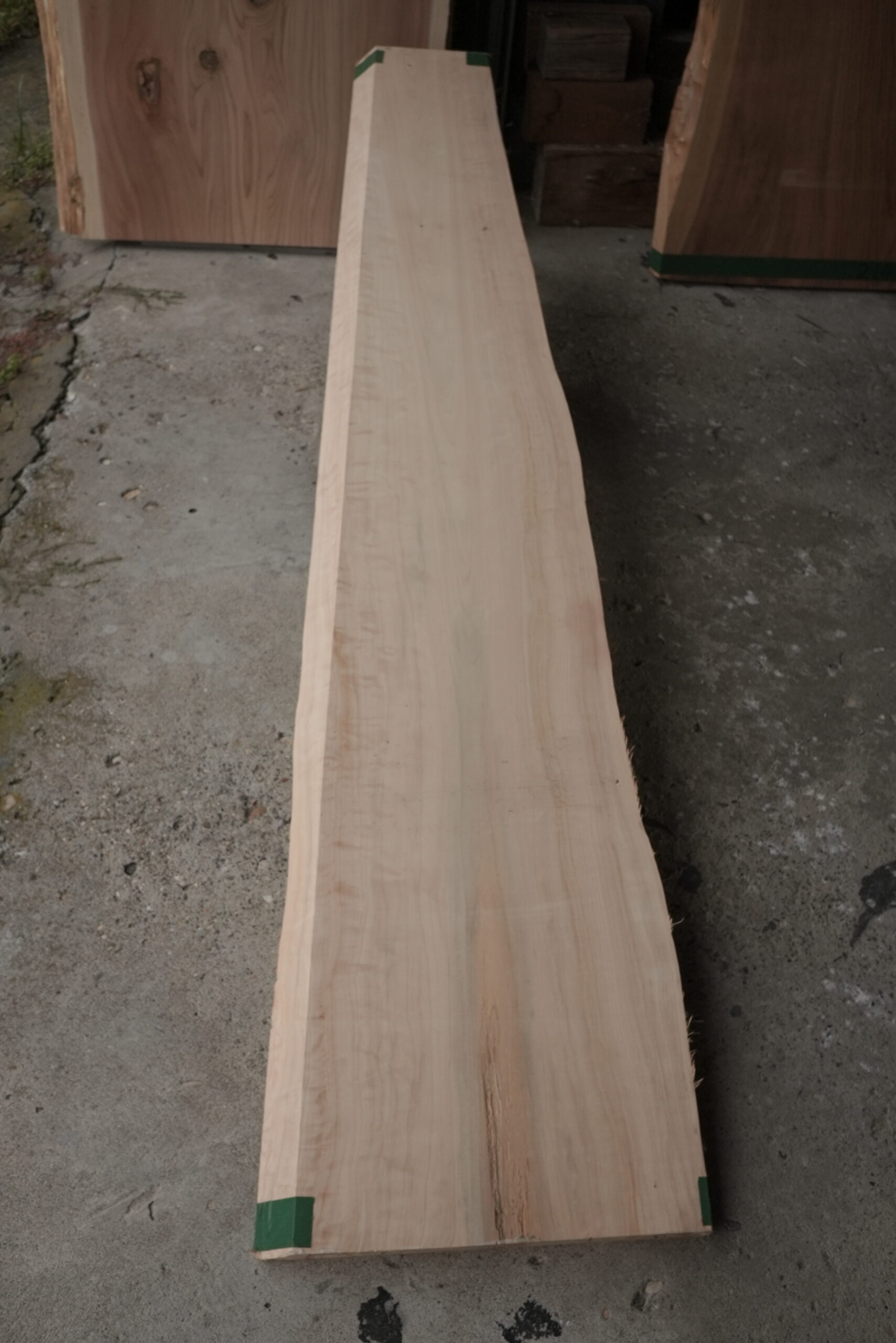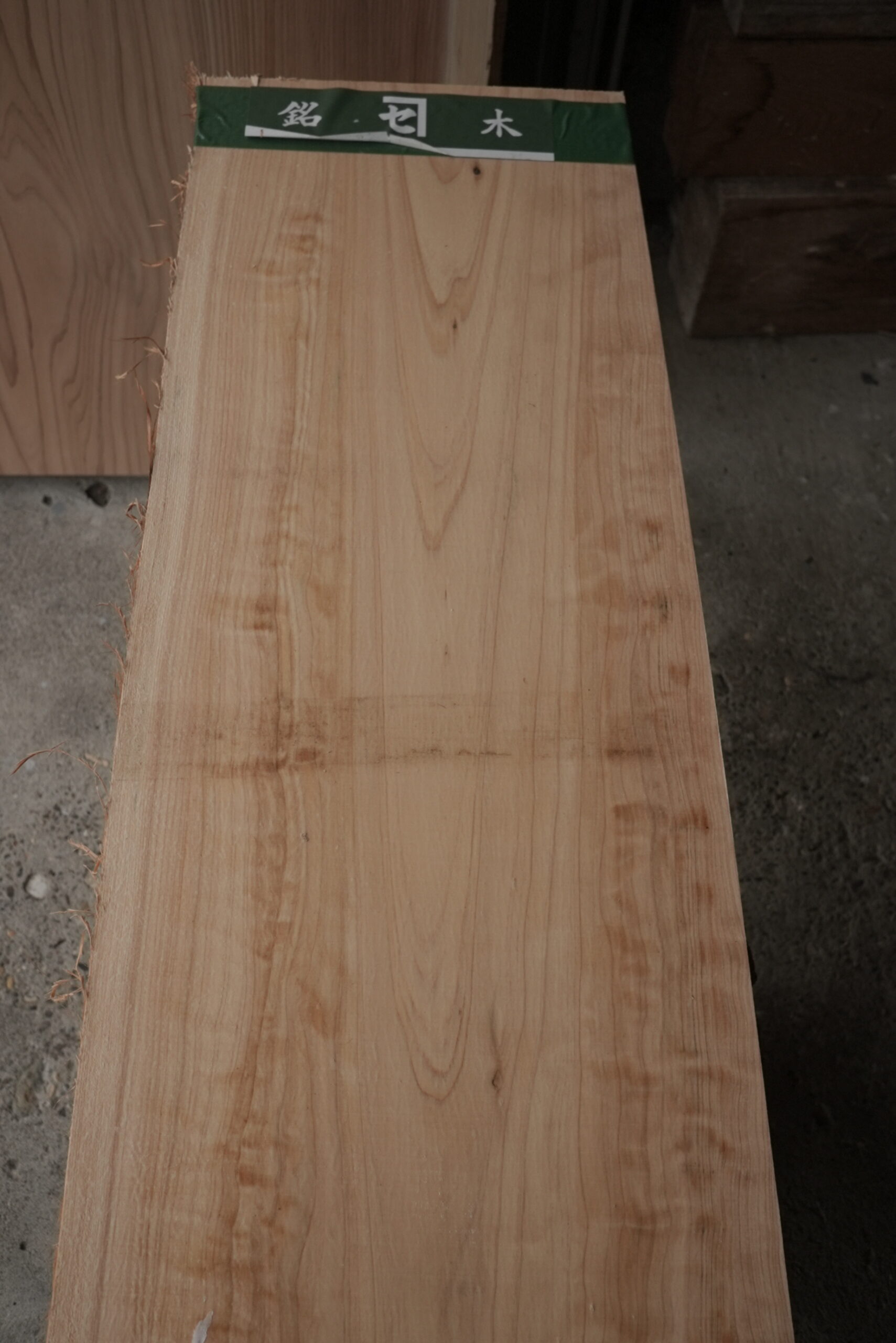ヒノキ一枚板です。ヒノキの香りがたまりません。幅は狭いですがさざ波杢が付いています。幅サイズは耳を含まない内々サイスです。インパクトのある一枚板ですのでオブジェ、各製品作りにも対応が出来ると思います。表面に割れ止めボンドを塗布しています。プレーナー掛け、オイル塗装をすると素晴らしくなります。