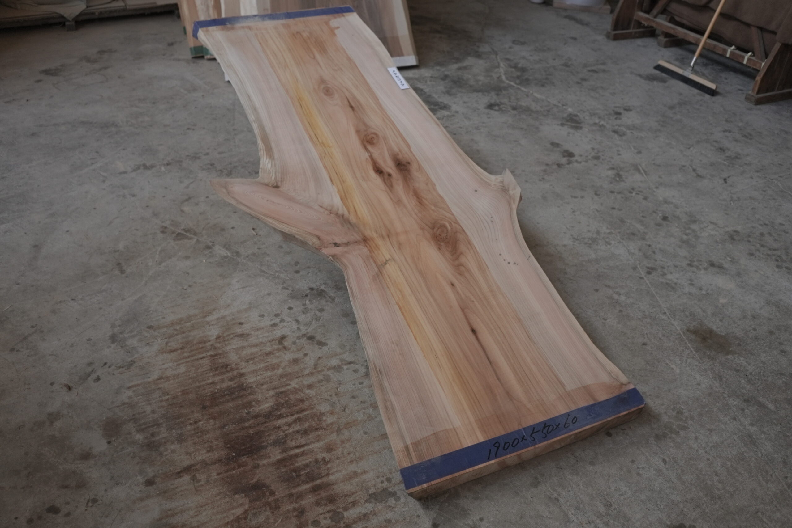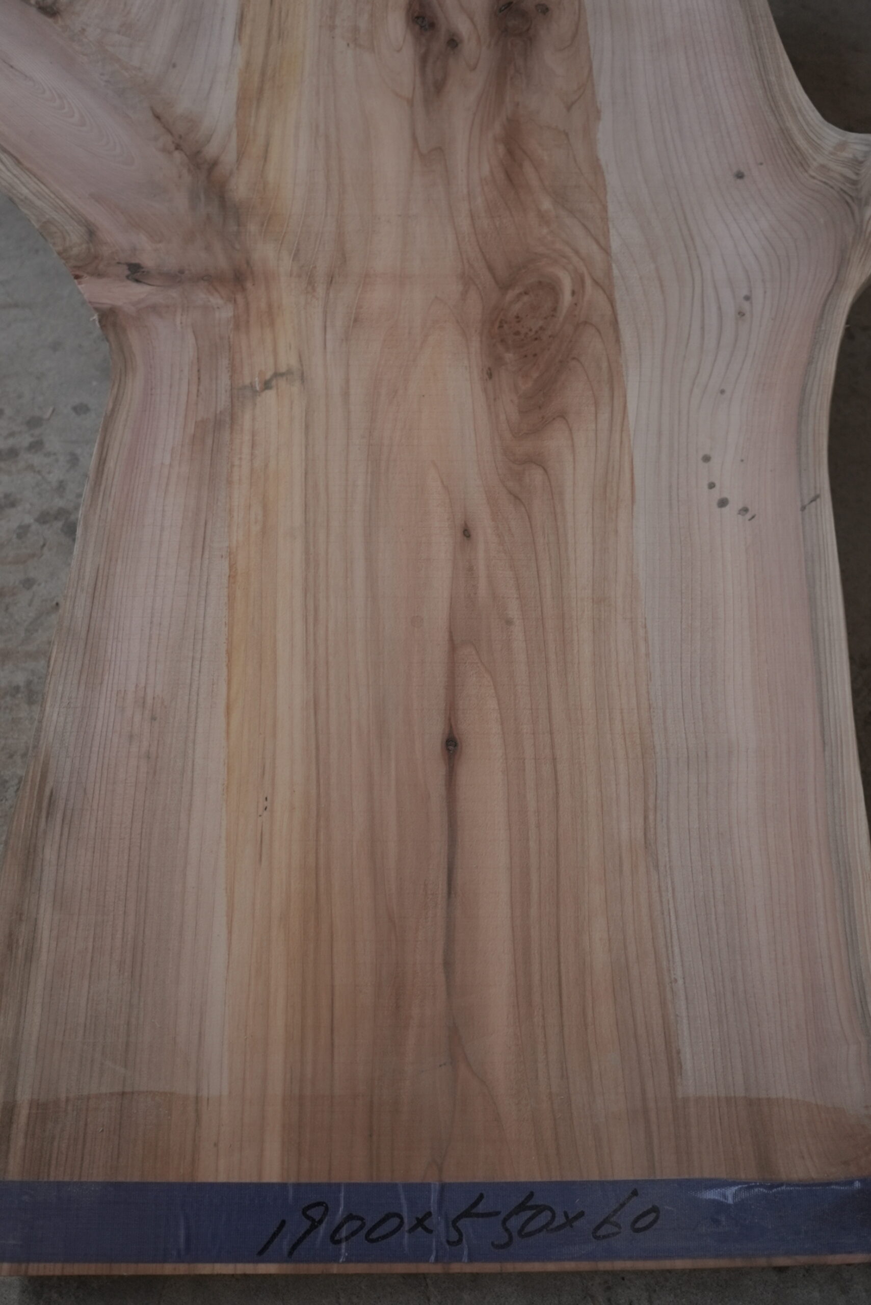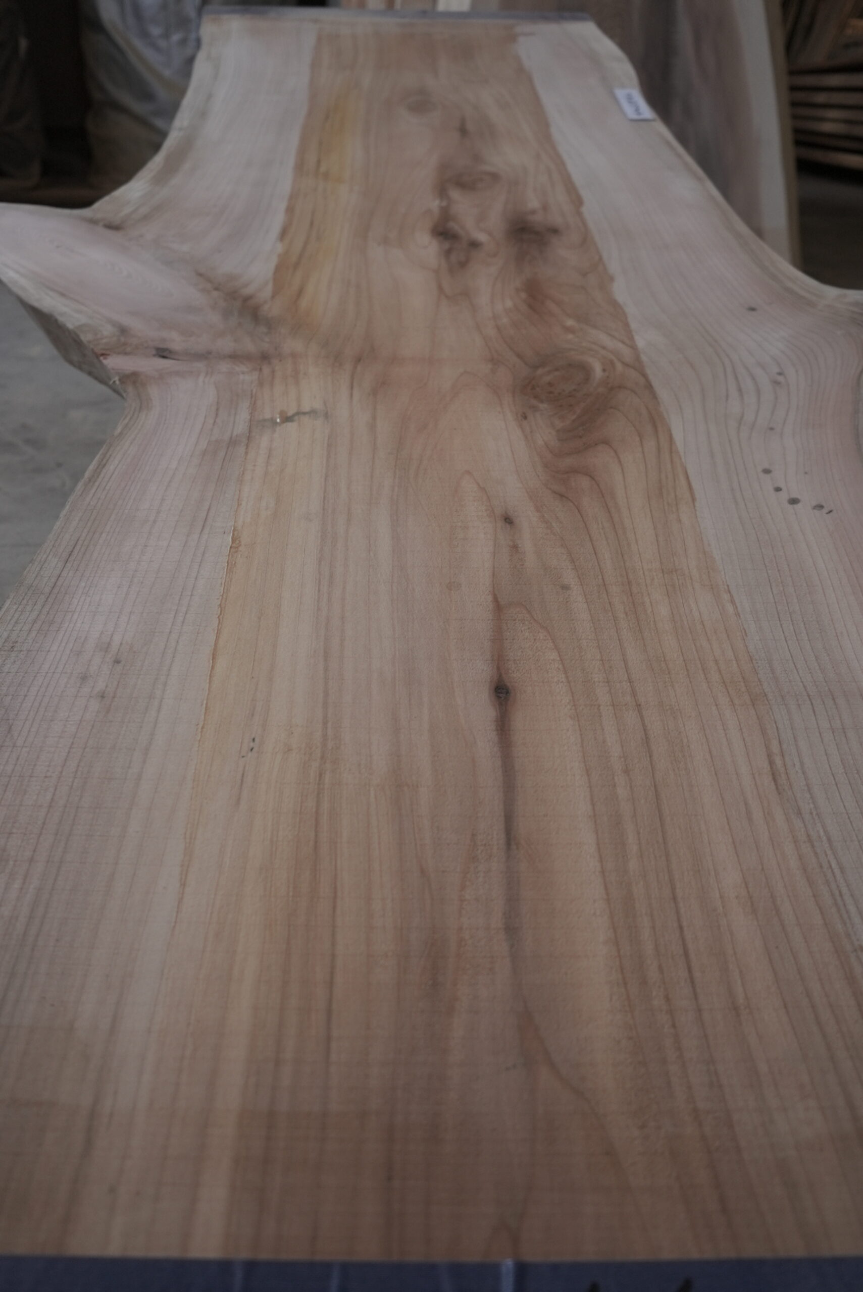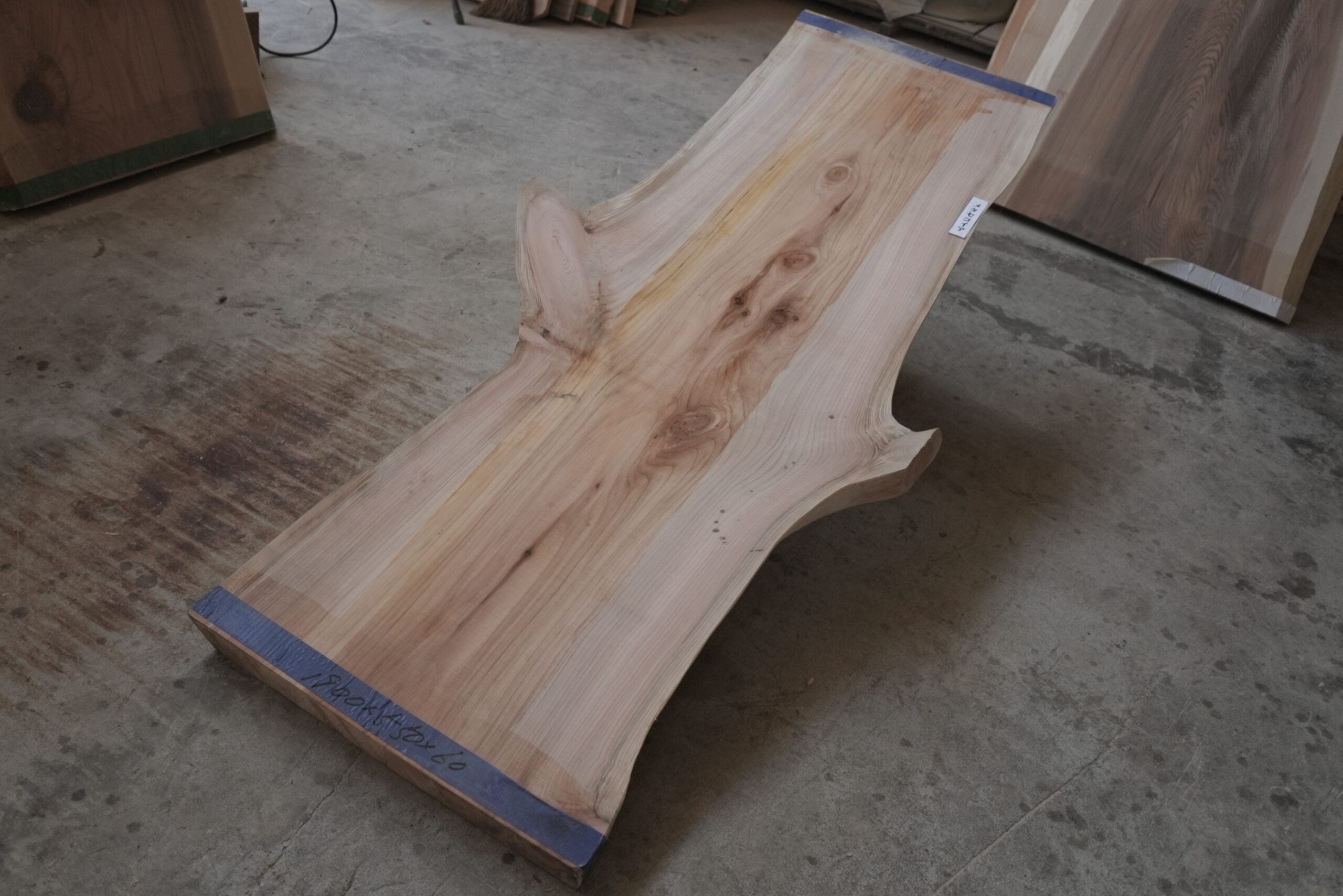 メタセコイアの一枚板です。変わった形でインパクトがあります。真ん中の濃い部分は割れ止めボンドを塗布しています。プレーナー掛けをすると落ちます。幅サイズは耳を含まない内々サイズです。このサイズですとローテーブルにいかがでしょうか。プレーナー掛け、オイル塗装をすると素晴らしくなります。