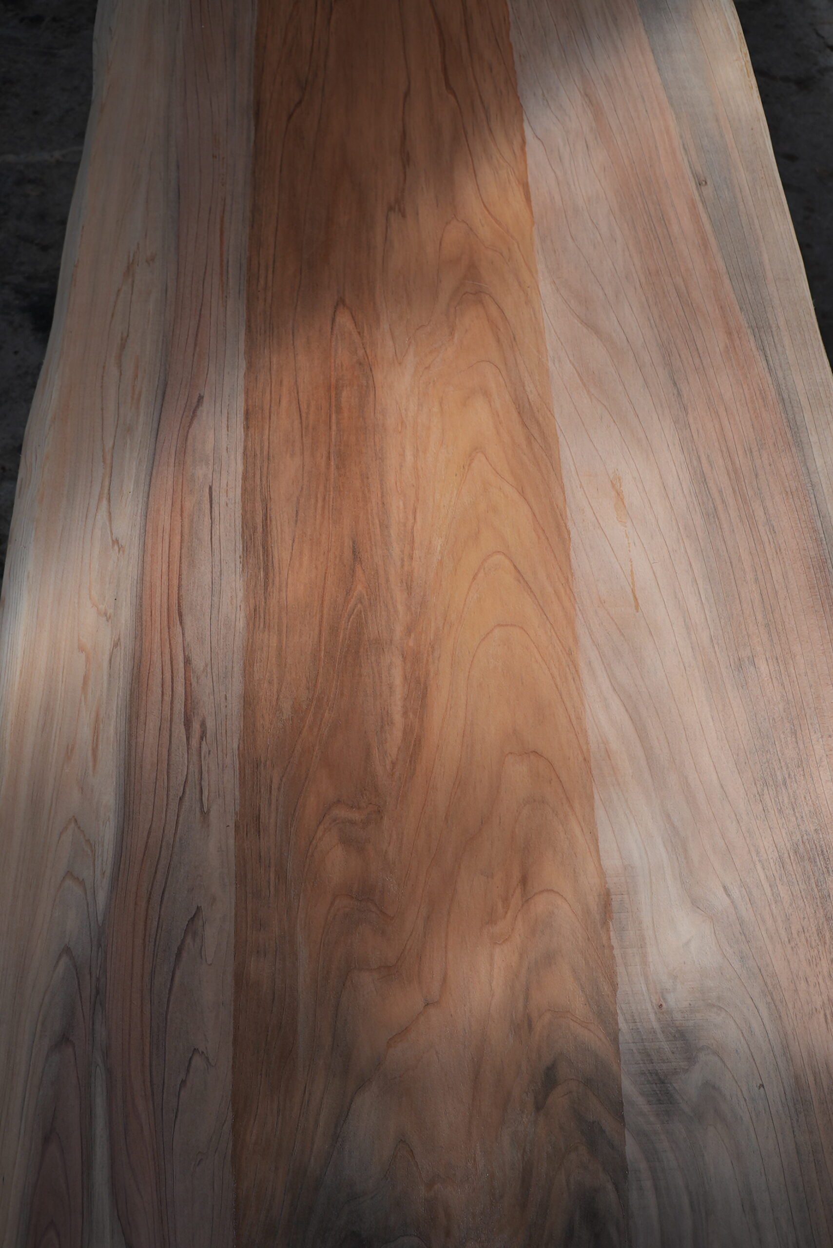 メタセコイアの一枚板です。市場では中々お目にかかれない一枚板です。真ん中の濃い部分は割れ止めボンドを塗布しています。プレーナー掛けをすると落ちます。幅サイズは耳を含まない内々サイズです。ワークデスク、カウンター等に対応が出来ます。プレーナー掛け、オイル塗装をすると素晴らしくなります。