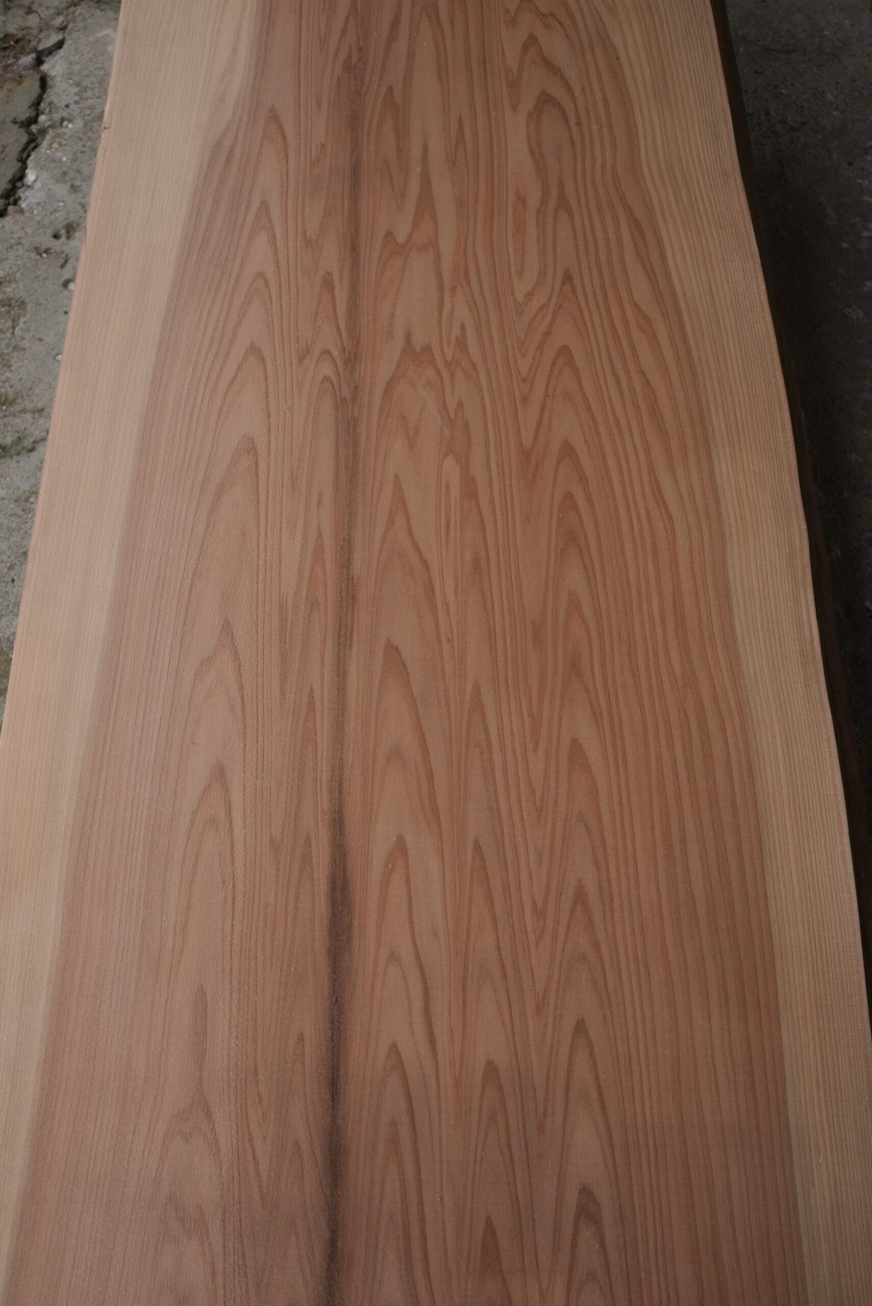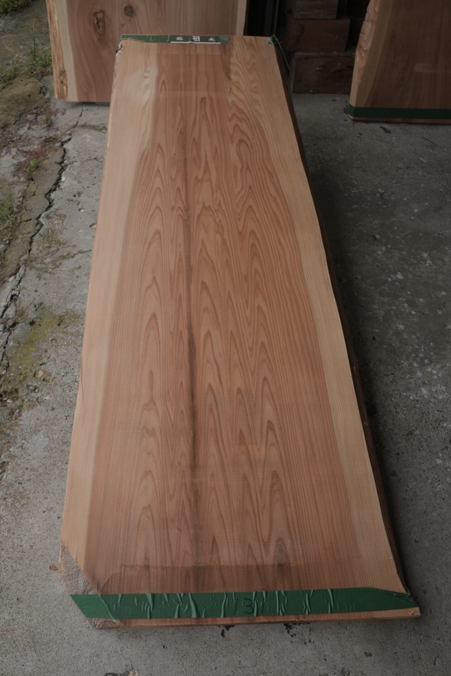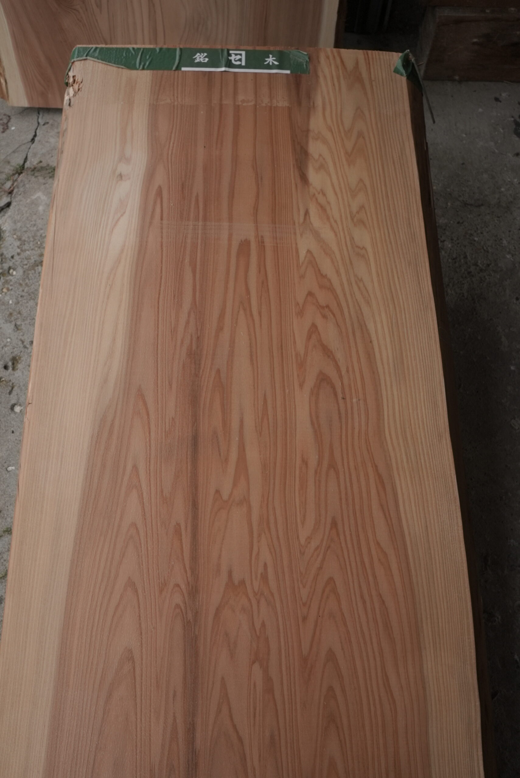 一枚板カウンタ―用天然杉一枚板です。カウンターに最適な一枚板です。色合も明るく綺麗な笹杢が付いてます。幅サイズは耳を含まない内々サイズです。表面に割れ止めボンドを塗布しています。プレーナー掛けをすると落ちます。プレーナー掛け、オイル塗装をすると尚一層良い感じになります。