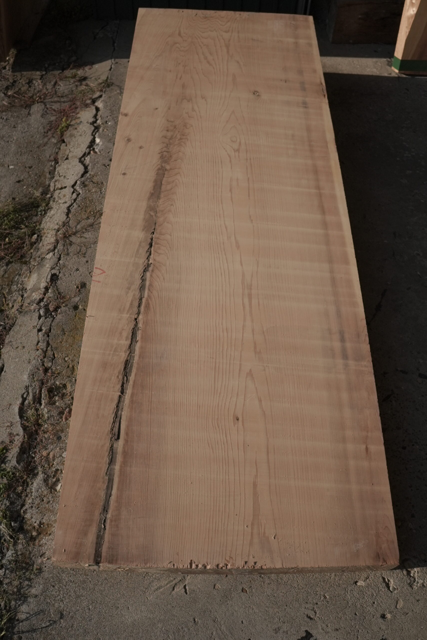 一枚板テーブル ダイニングテーブル用天然杉一枚板です。素晴らしい杢目が付いています。幅サイズは耳を含めない内々サイズです。幅も700㎜ありますので十二分にテーブルとしてご使用が出来ます。プレーナー掛け、オイル塗装をすると素晴らしくなります。