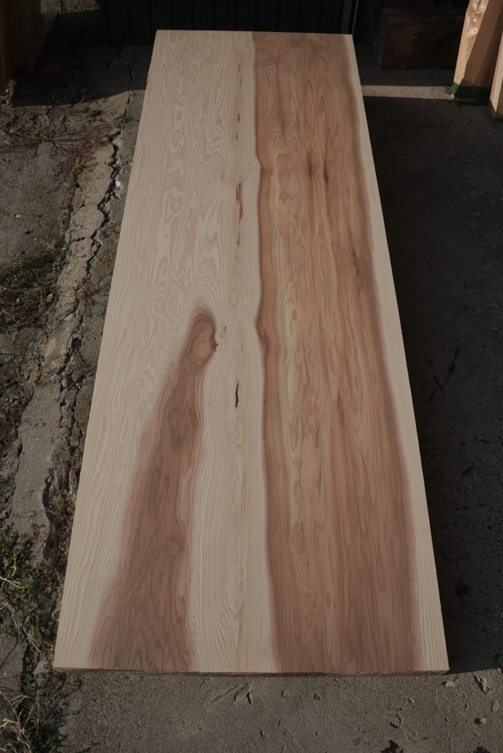 天然杉一枚板です。耳が付いていない極上杢一枚板テーブルです。幅(奥行)が700㎜です。狭くもなく広くもなく丁度良いサイズです。白太が多いですが極上の杢目が付いています。まずは極上の杢目を楽しんで下さい。プレーナー掛け、オイル塗装をすると素晴らしくなります。