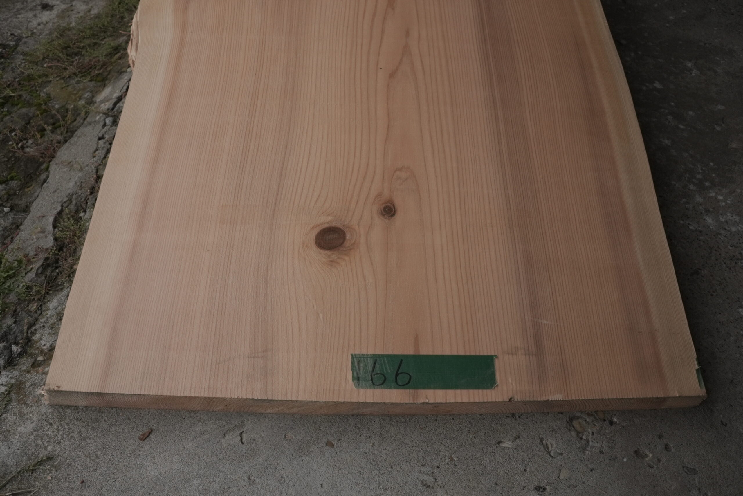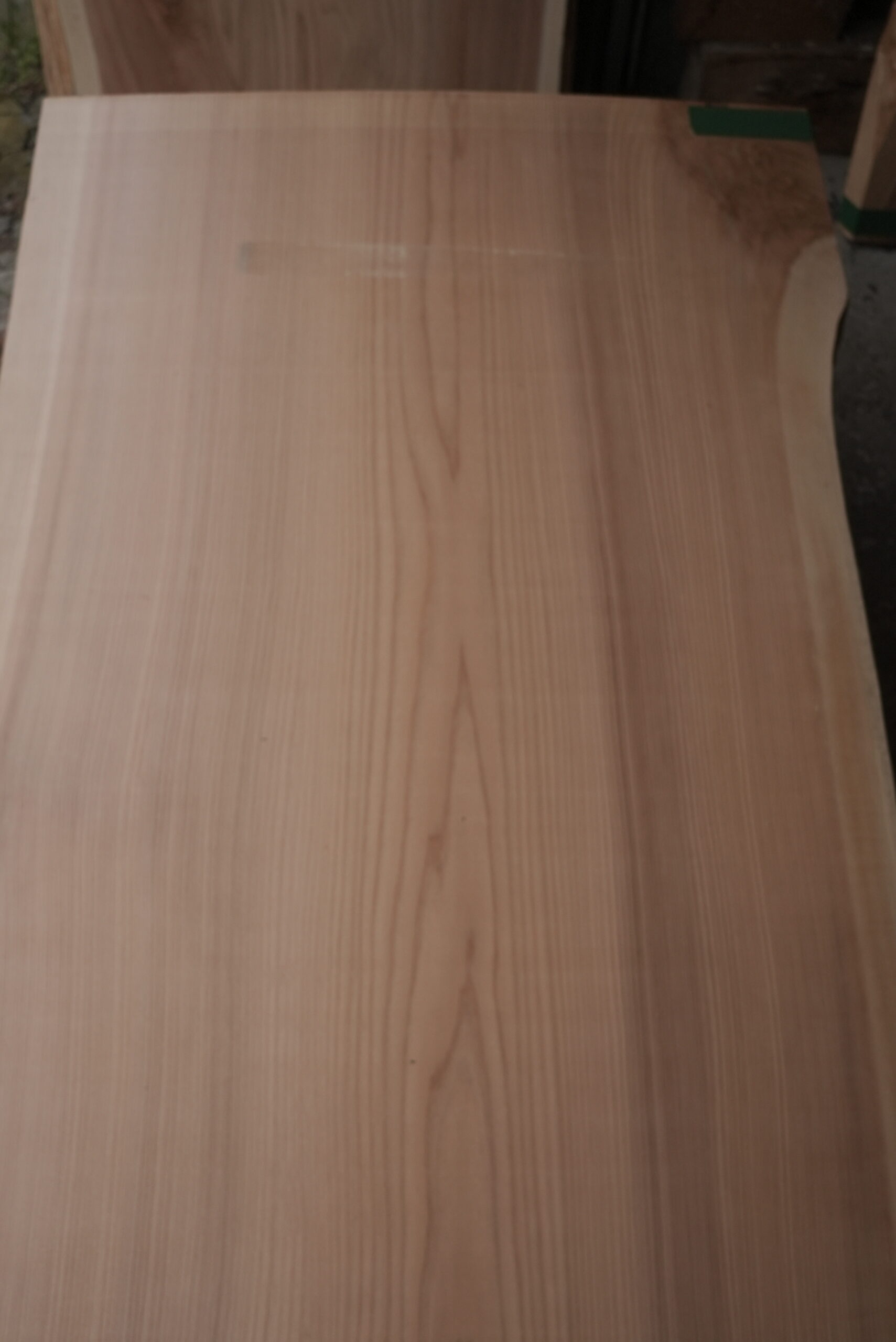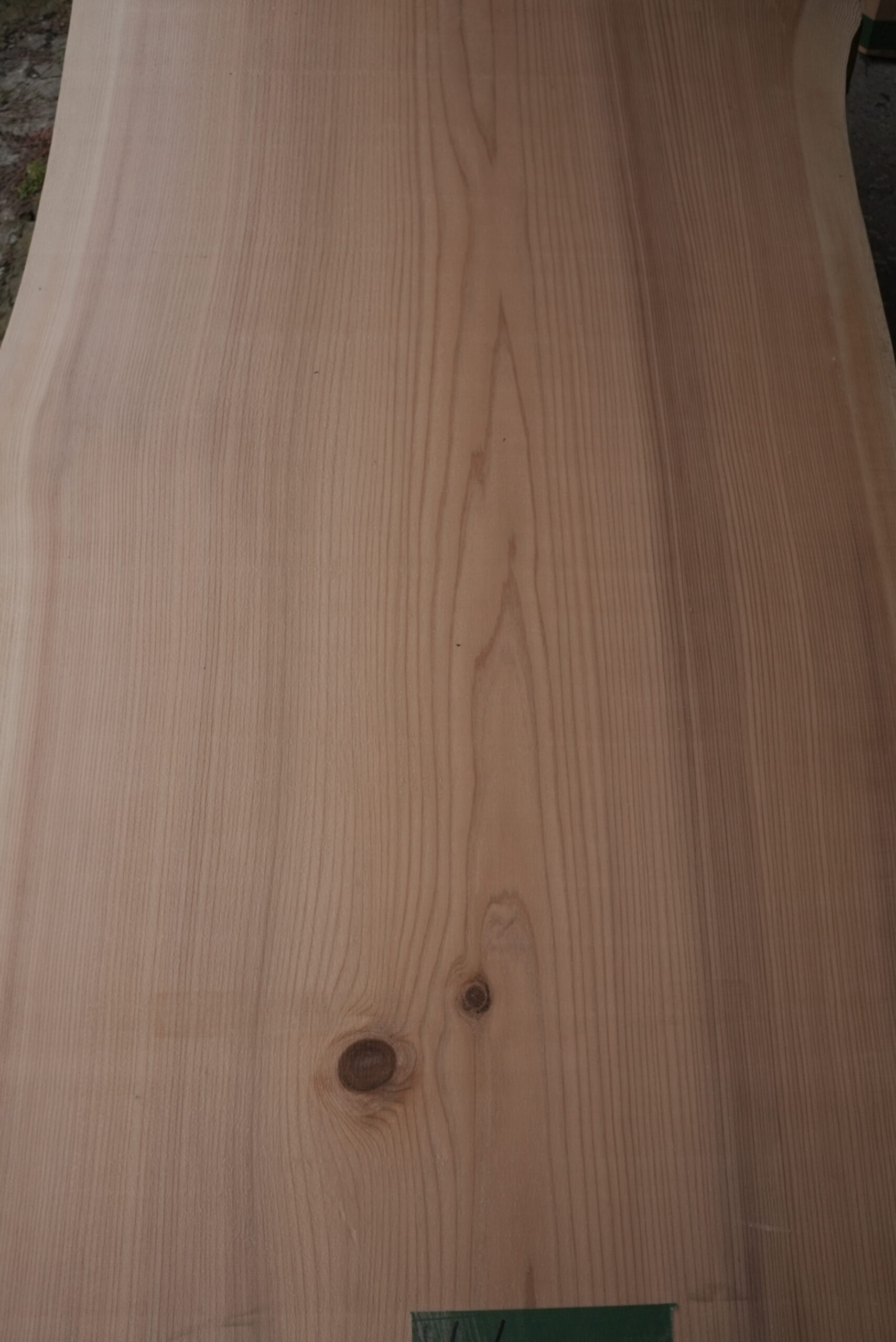 天然杉一枚板です。幅が全体で900㎜、長さ1500㎜のテーブル用サイズになります。色合いはピンク色で明るい感じになるでしょう。節が付いていますがアクセントになっています。耳部分も僅かに湾曲になっていて良い感じになっています。プレーナー掛け、オイル塗装をすると素晴らしくなります。
