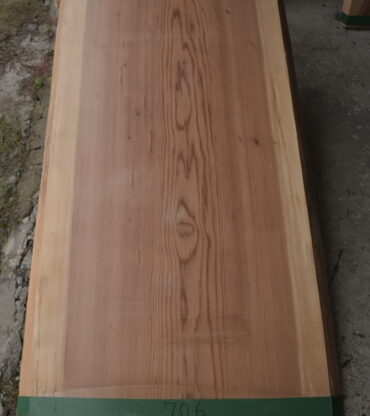 天然杉一枚板です。幅が全体で720㎜、長さ1300㎜のテーブル用サイズになります。色合いはやや赤みが強く綺麗な一枚板です。無節で耳は付いていますがややストレートになっていて幅はある物のスッキリした感じです。プレーナー掛け、オイル塗装をすると素晴らしくなります。