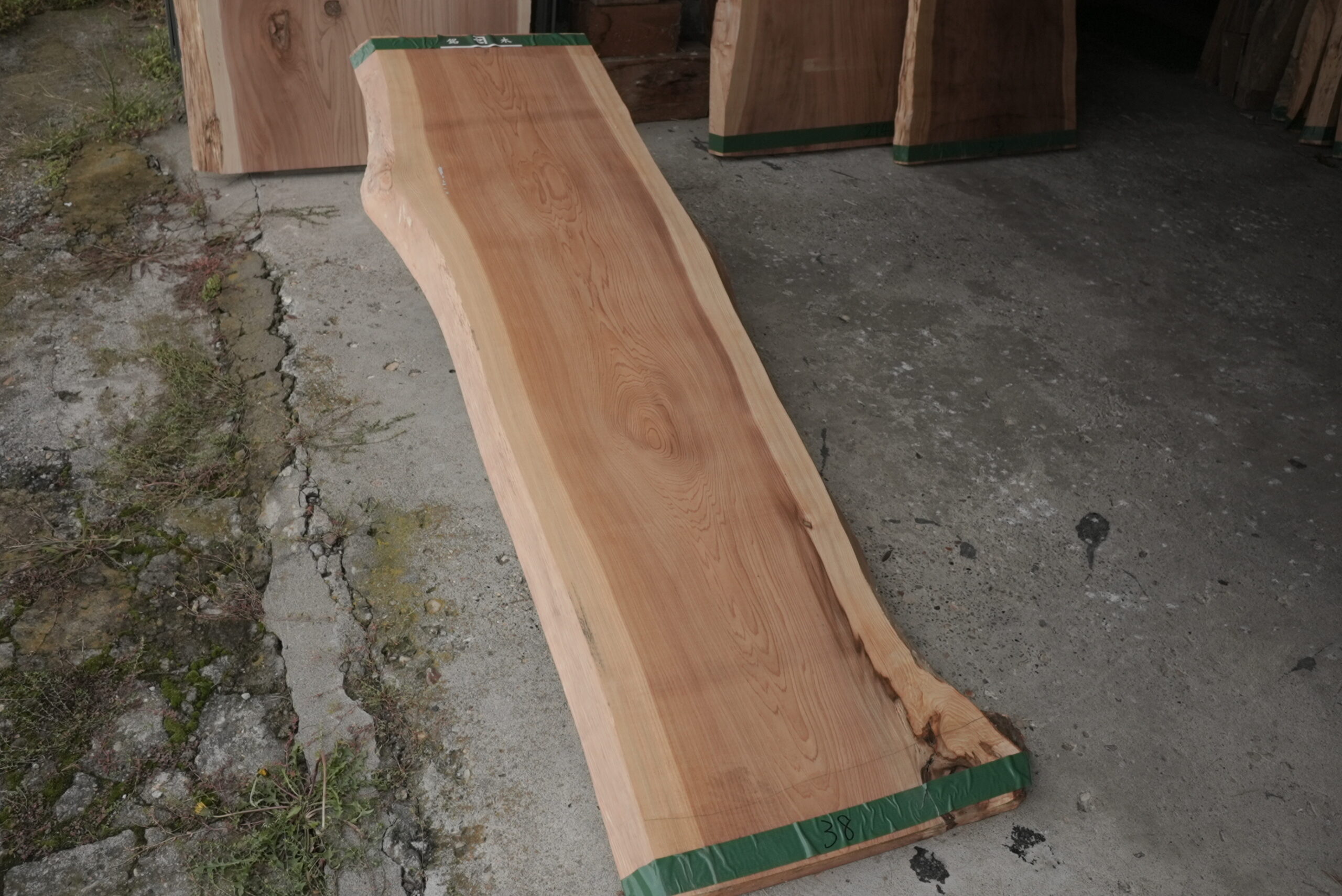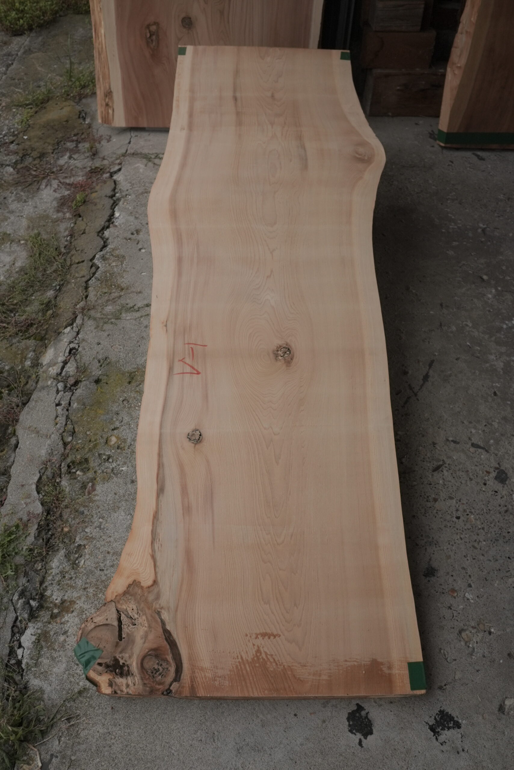 看板用天然杉一枚板です。看板に最適な一枚板です。耳部分も良い感じになっています。色合も明るく綺麗な杢目が付いてます。幅サイズは耳を含まない内々サイズです。表面に割れ止めボンドを塗布しています。プレーナー掛けをすると落ちます。プレーナー掛け、オイル塗装をすると尚一層良い感じになります。
