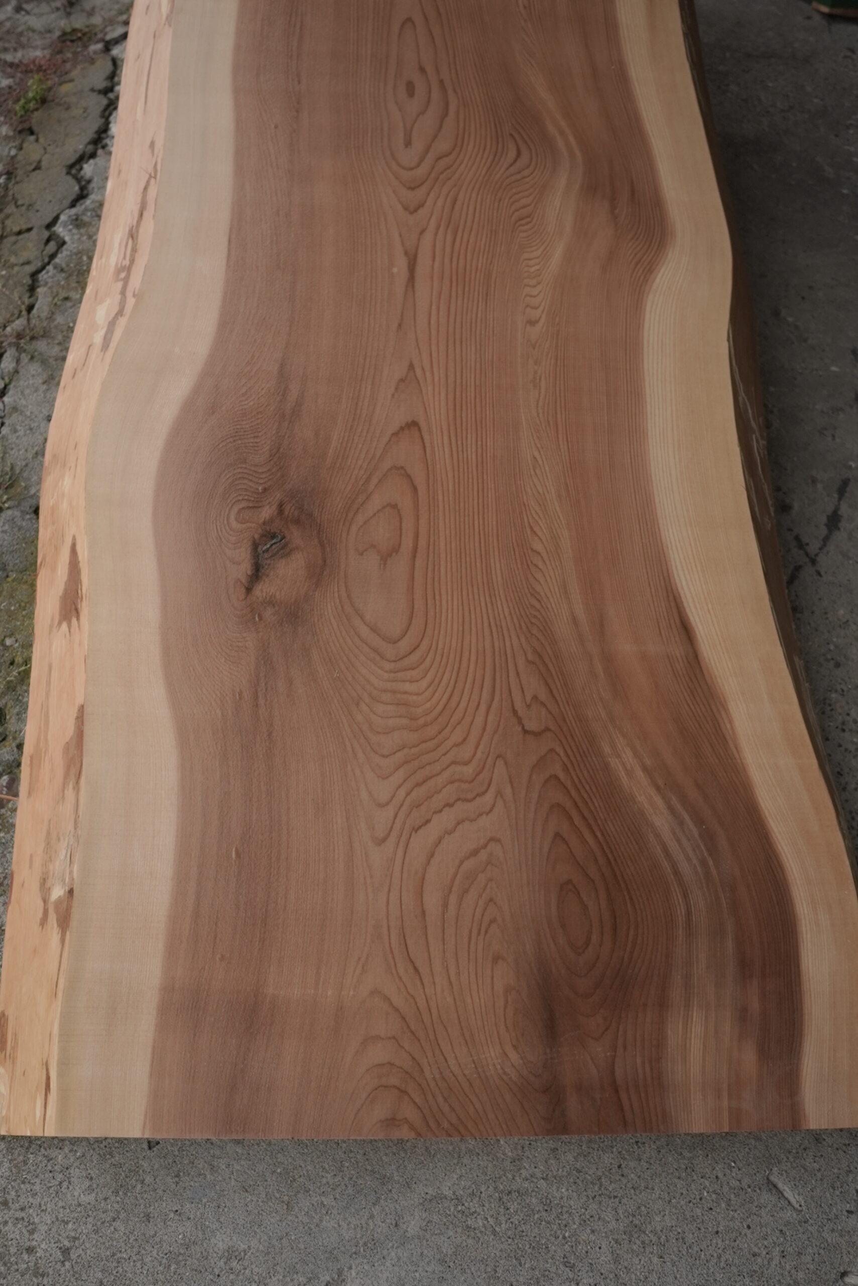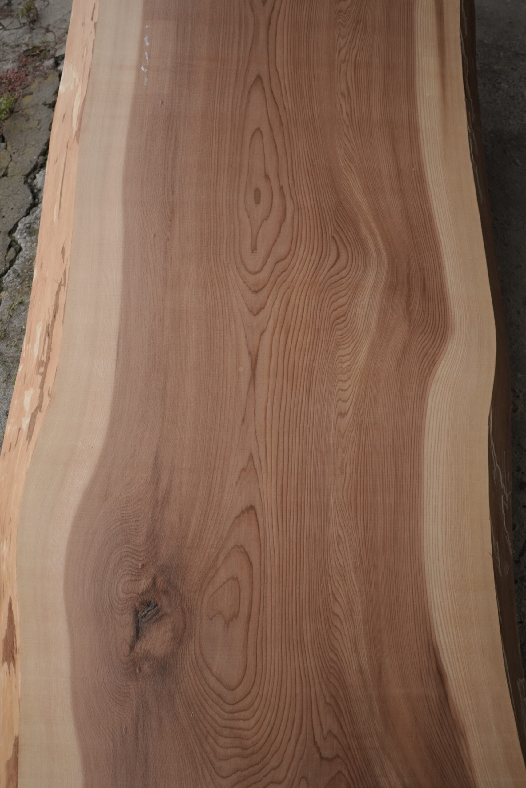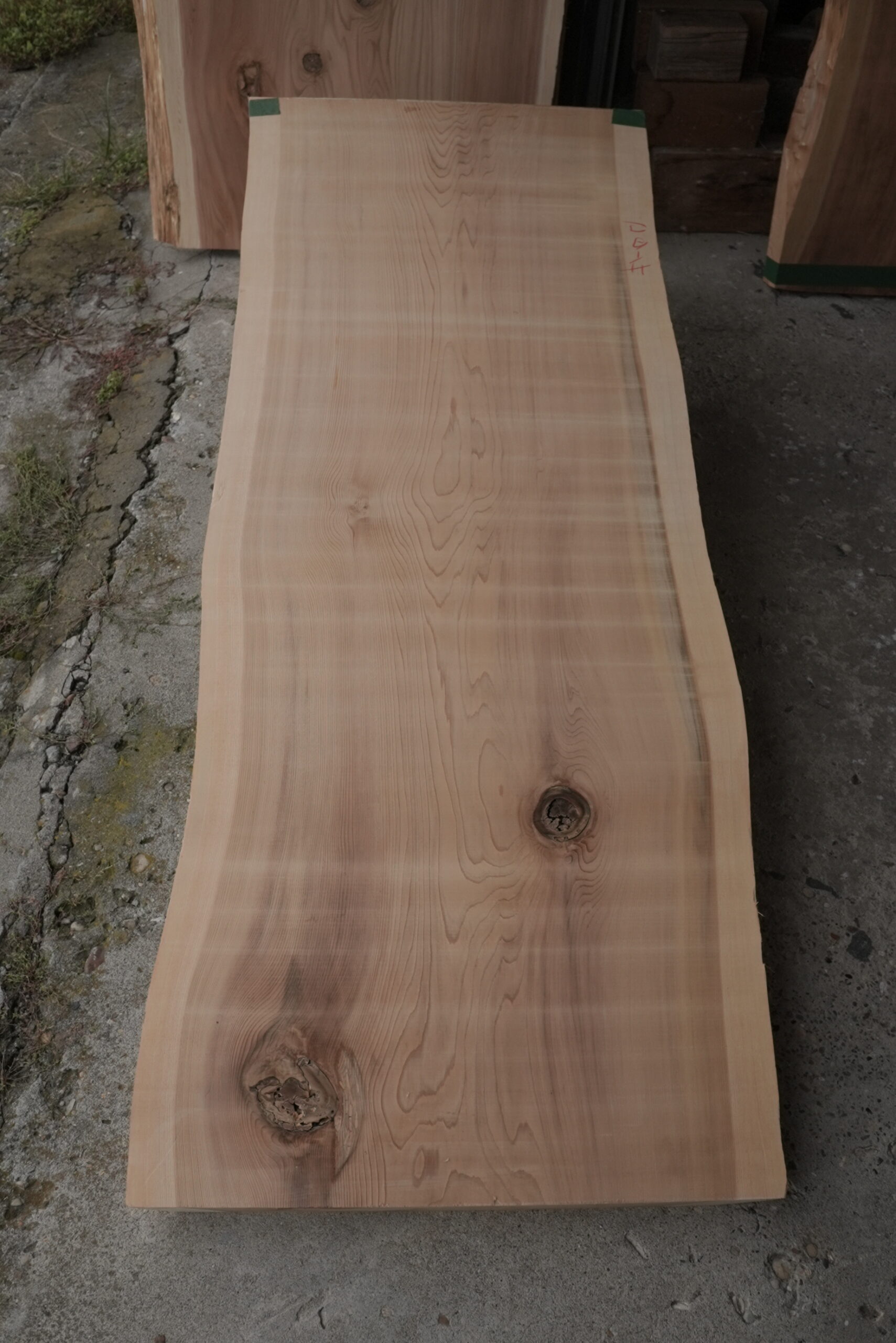 看板用天然杉一枚板です。看板に最適な一枚板です。耳部分も良い感じになっています。色合も明るく綺麗な杢目が付いてます。幅サイズは耳を含まない内々サイズです。表面に割れ止めボンドを塗布しています。プレーナー掛けをすると落ちます。プレーナー掛け、オイル塗装をすると尚一層良い感じになります。