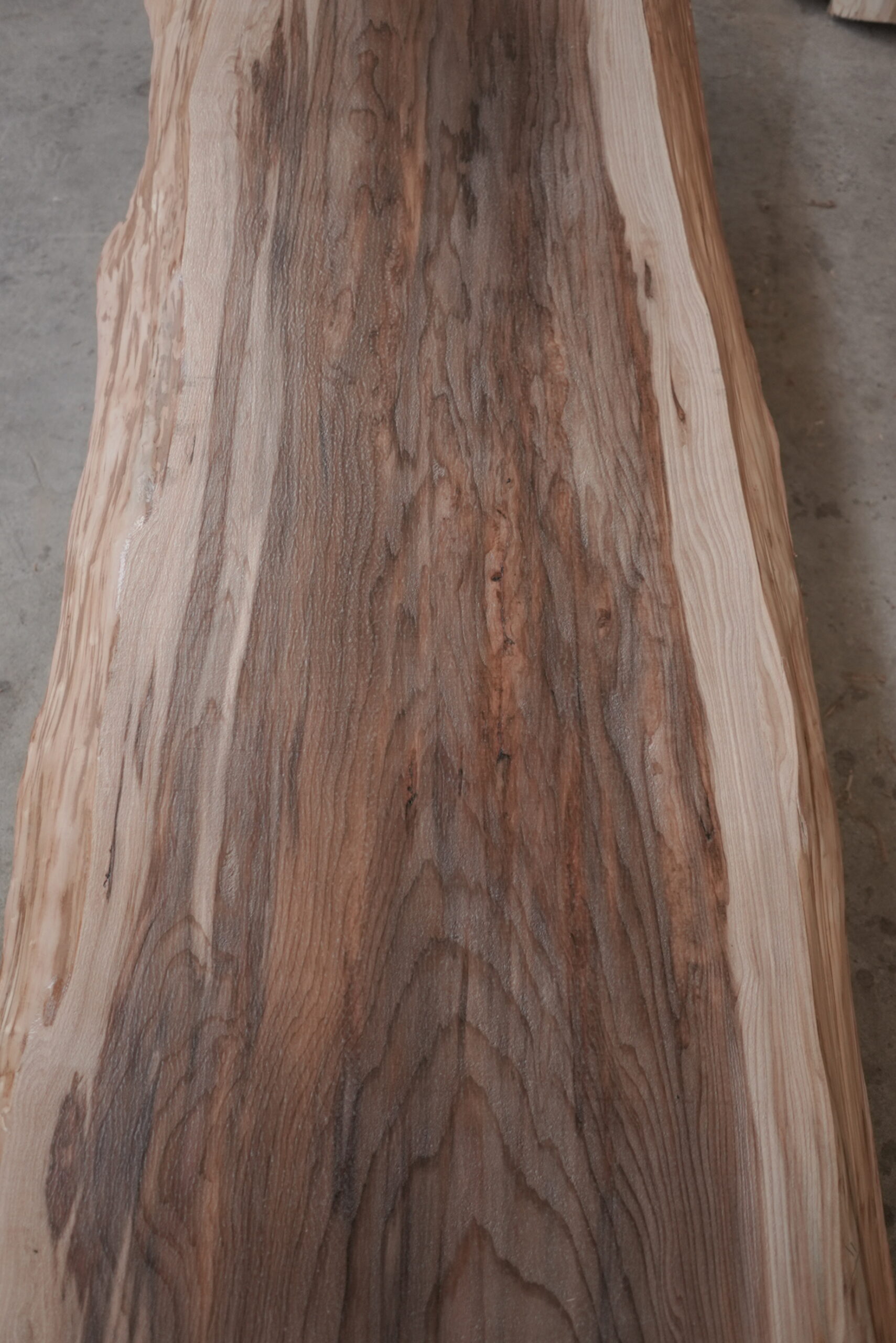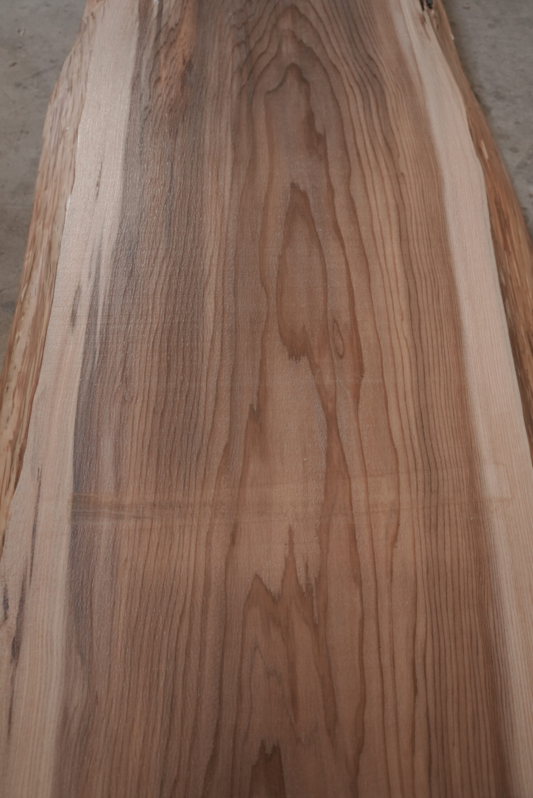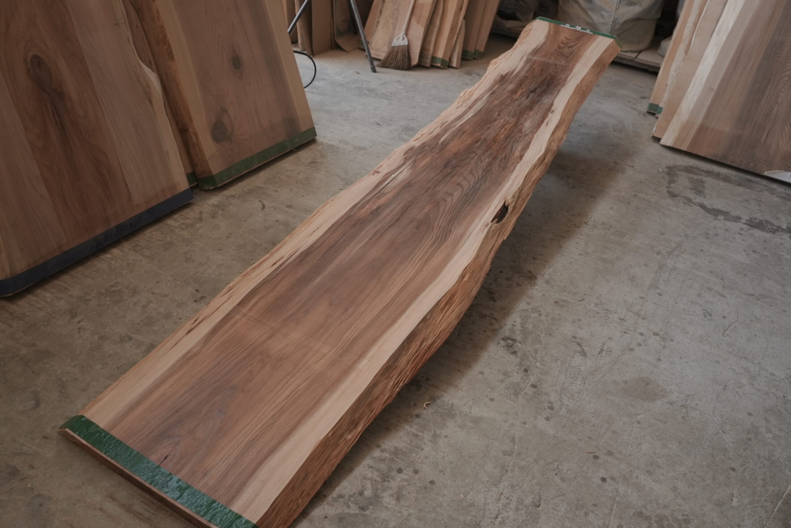 天然杉一枚板です。赤身が褐色の色合いをしています。キッチンカウンター等にいかがでしょうか。表面に割れ止めボンドを塗布しています。プレーナー掛けをすると落ちます。幅サイズは耳を含まない内々サイズです。インパクトのある一枚板を是非ご購入下さい。プレーナー掛け、オイル塗装をすると素晴らしくなります。