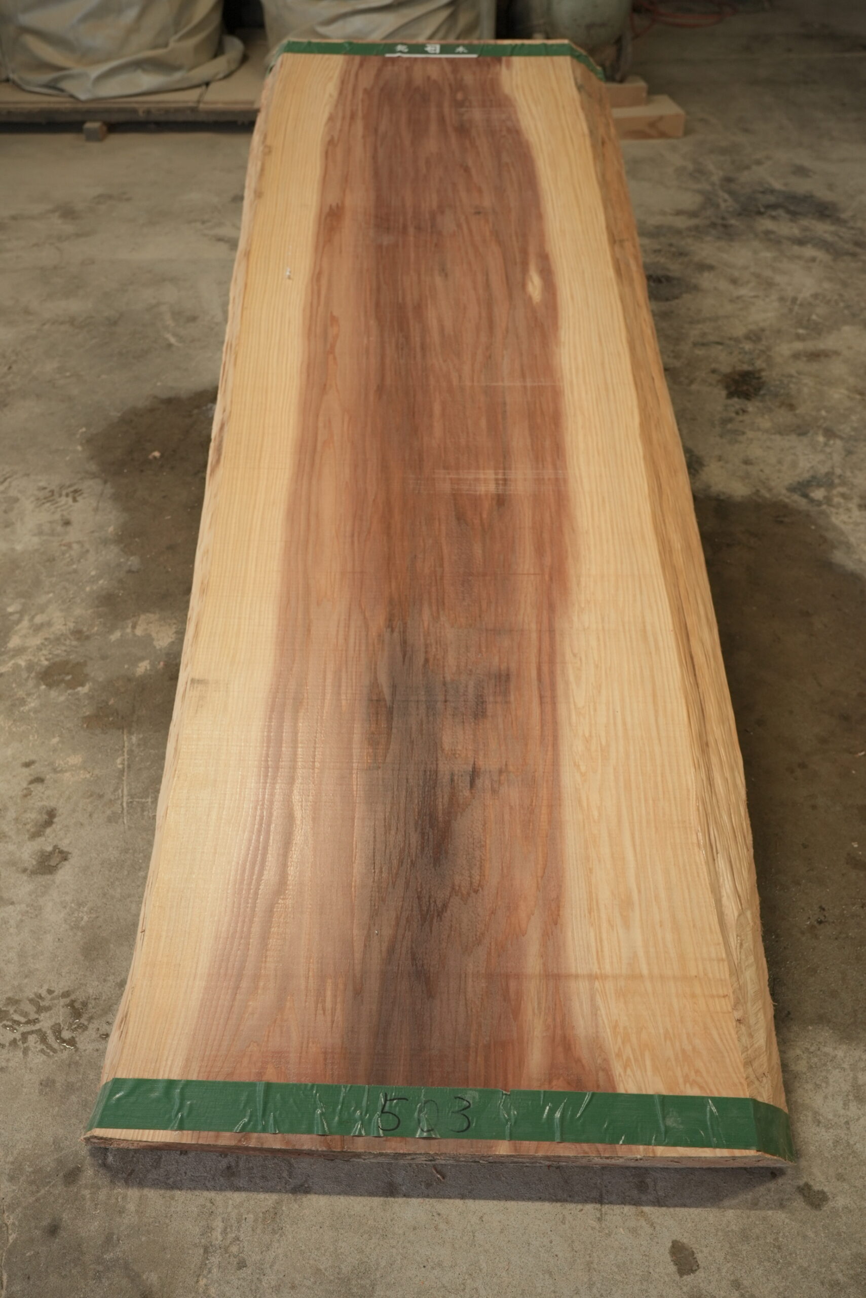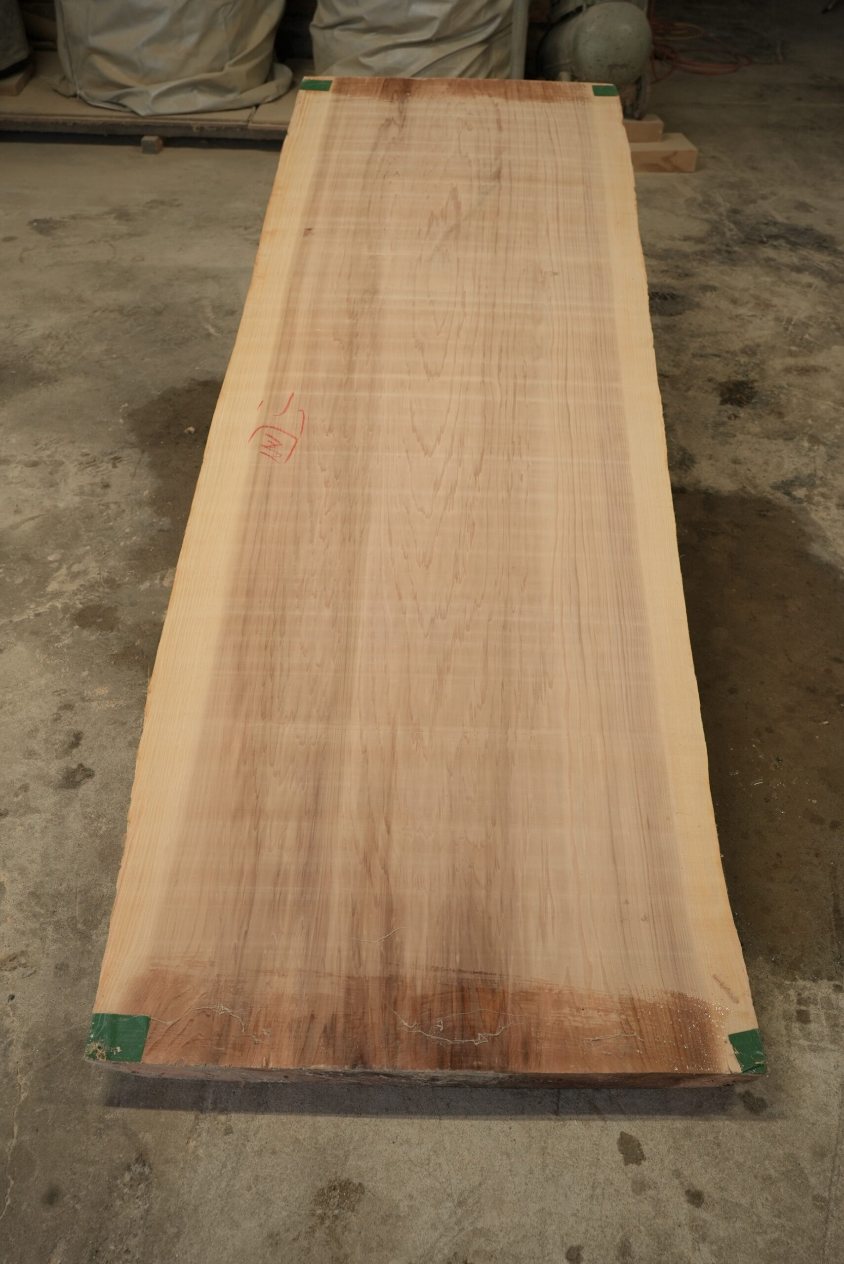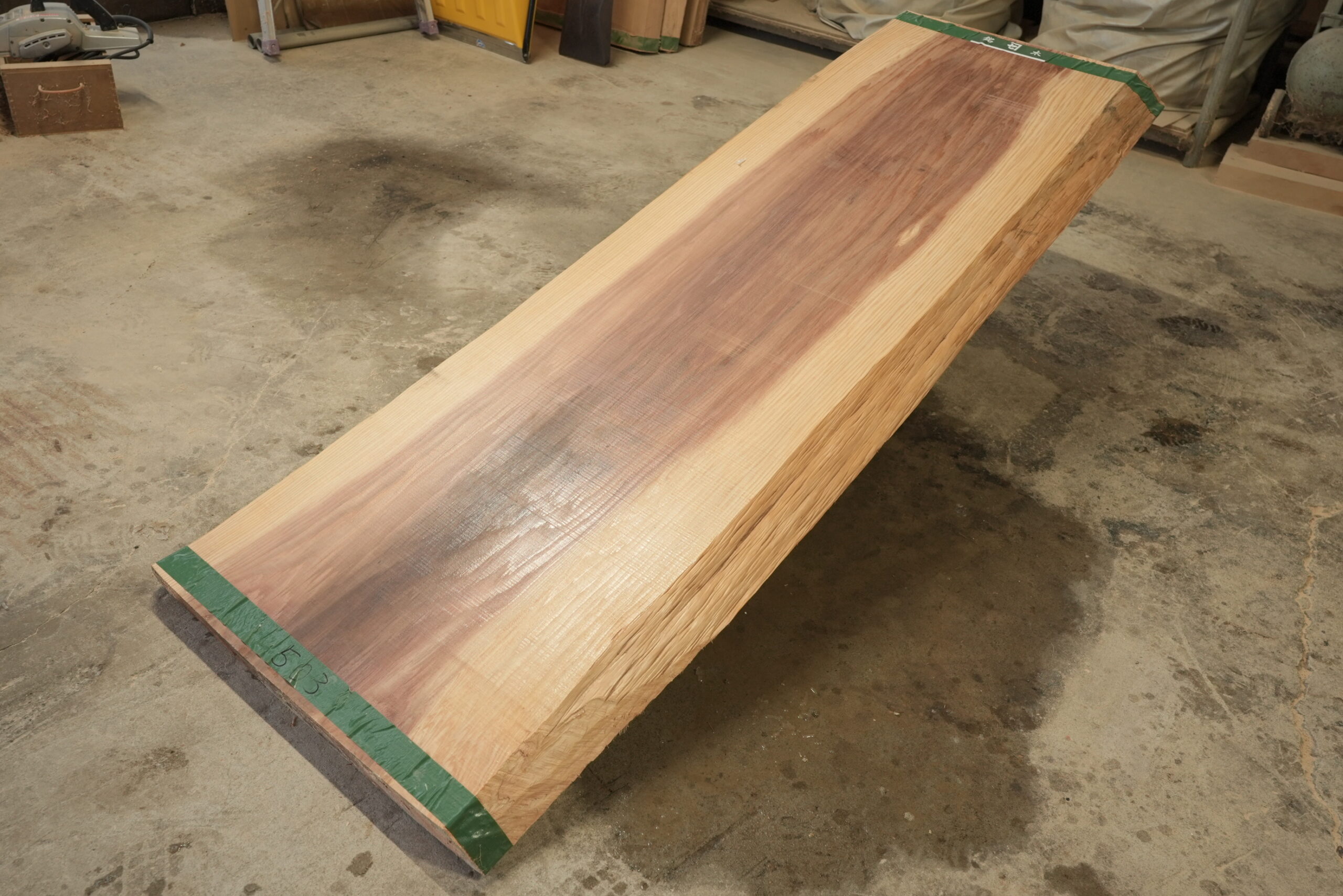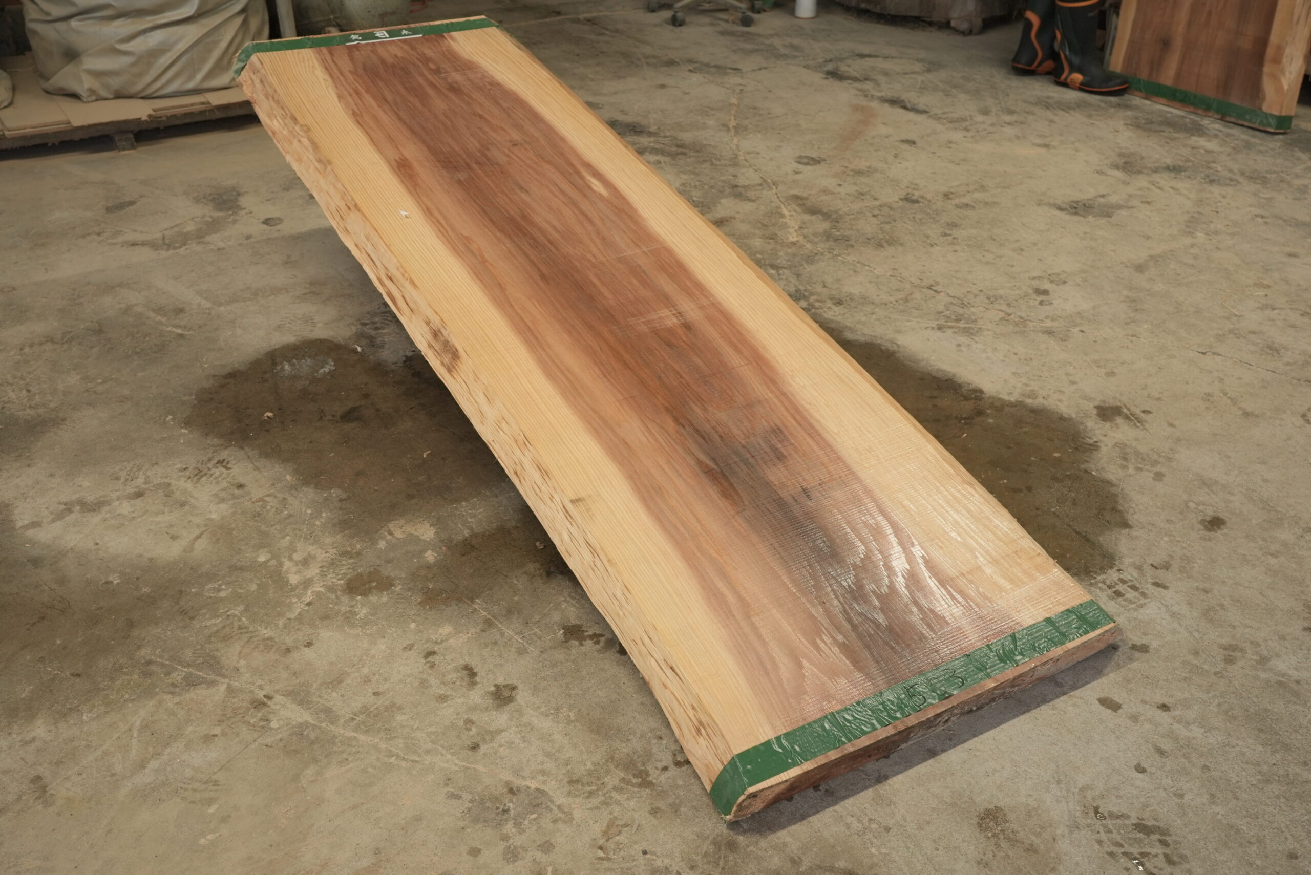 天然杉一枚板です。奥行が60㎝ありますので一枚板カウンター、ワークデスクテーブルには最適なサイズです。幅サイズは耳を含まない内々サイズです。長さが2100㎜あるので使い勝手が良い一枚板です。動きのある杢目も魅力的です。表面に割れ止めボンドを塗布していますがプレーナー掛けをすると落ちます。