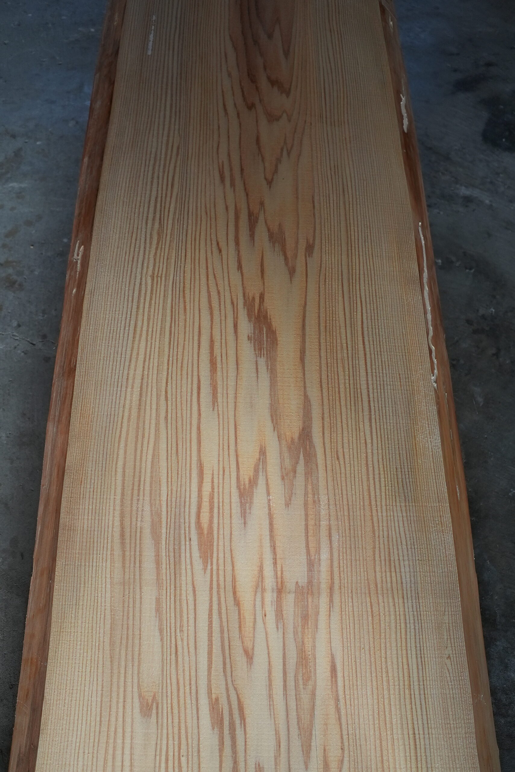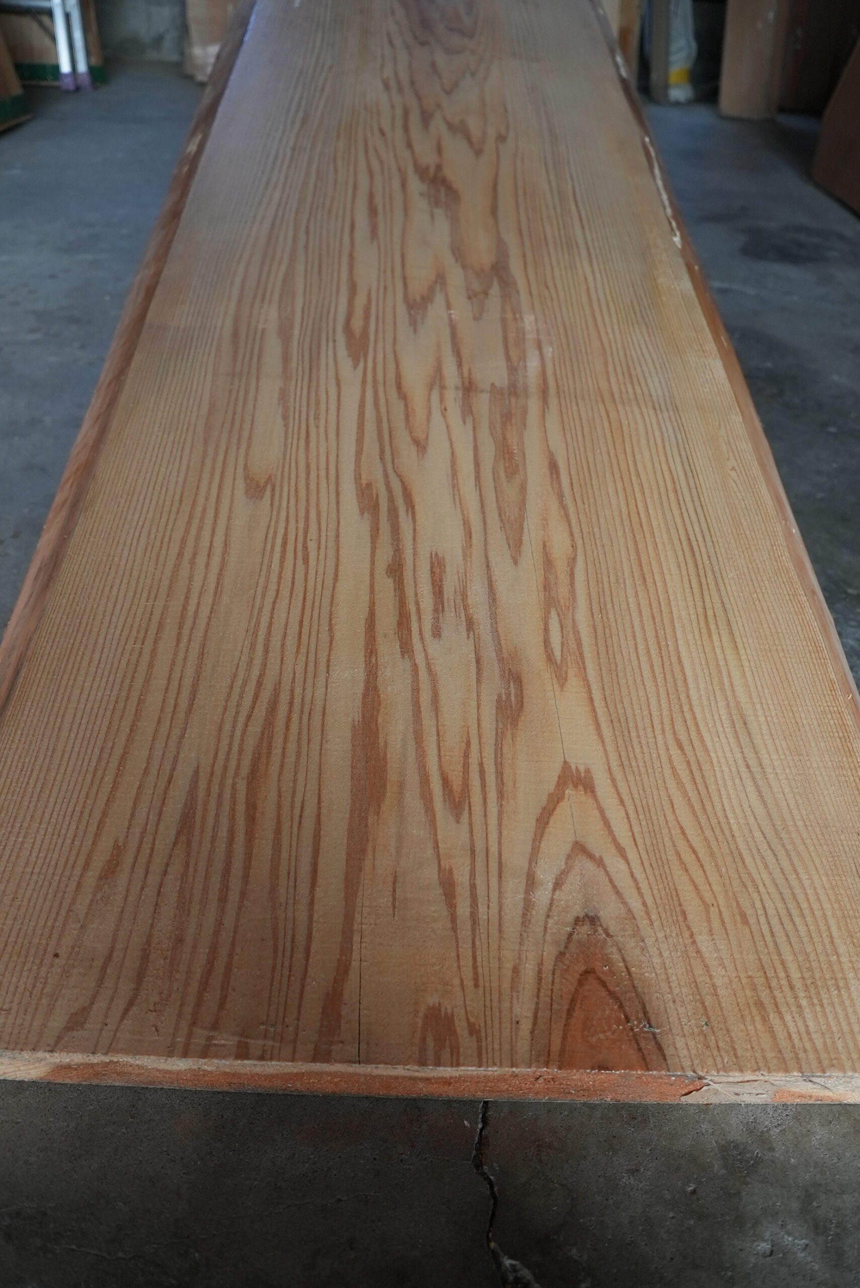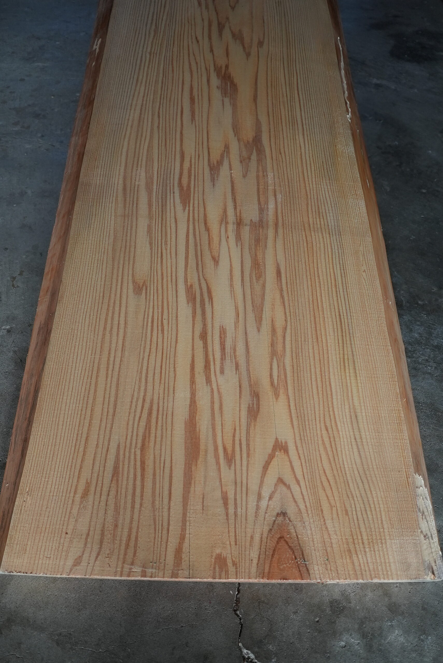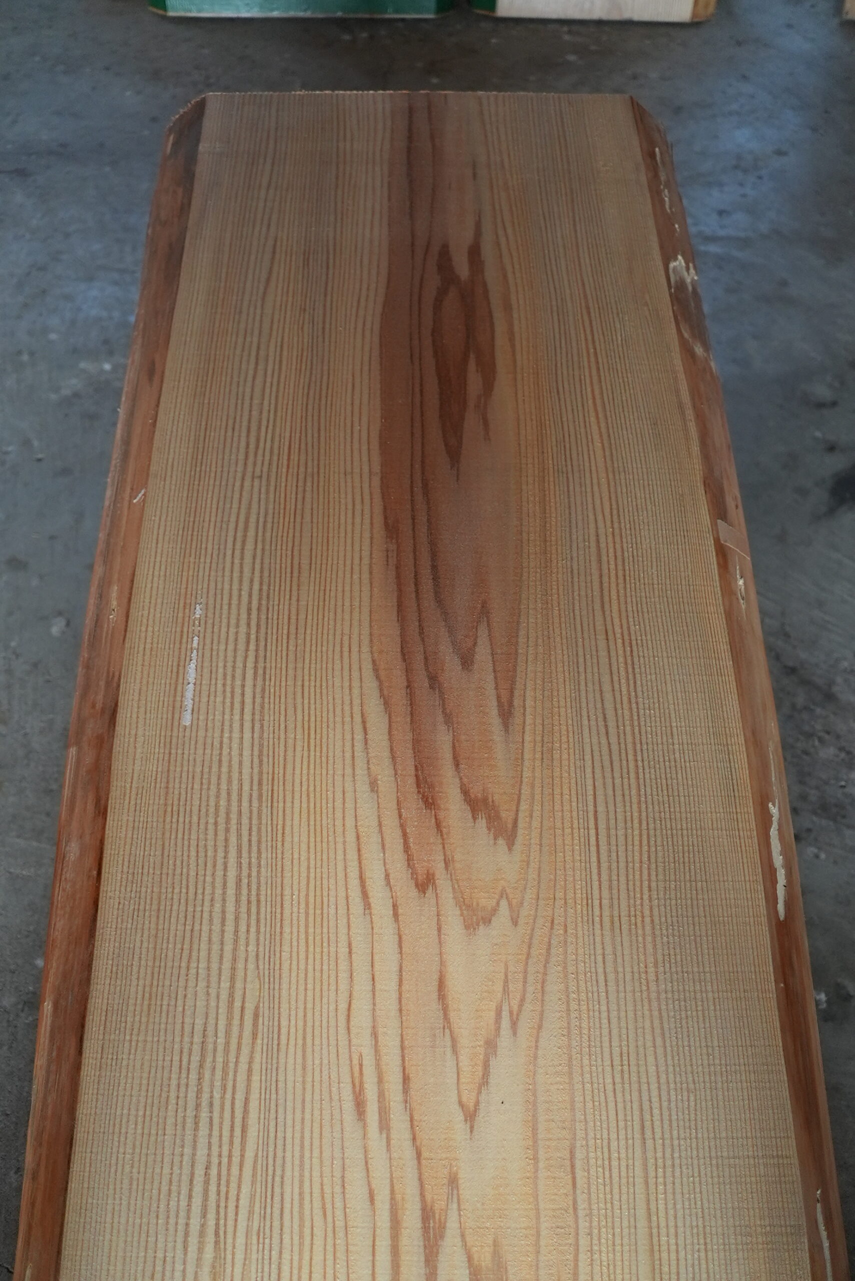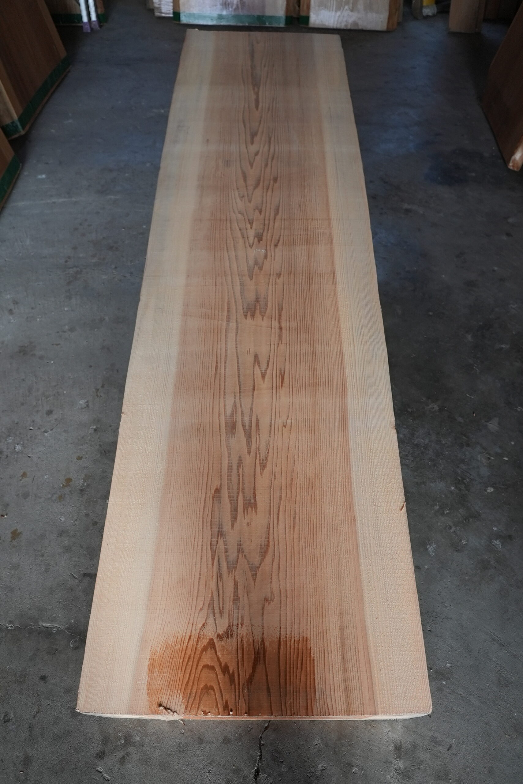 天然杉一枚板です。純白に近い素晴らしい一枚板です。カウンター、ワークデスク等にいかがでしょうか。思った以上に使い勝手が良い一枚板です。プレーナー掛け、オイル塗装をすると素晴らしくなります。 耳部分も自然な感じが出ています。幅サイズは耳を含まない内々サイズです。