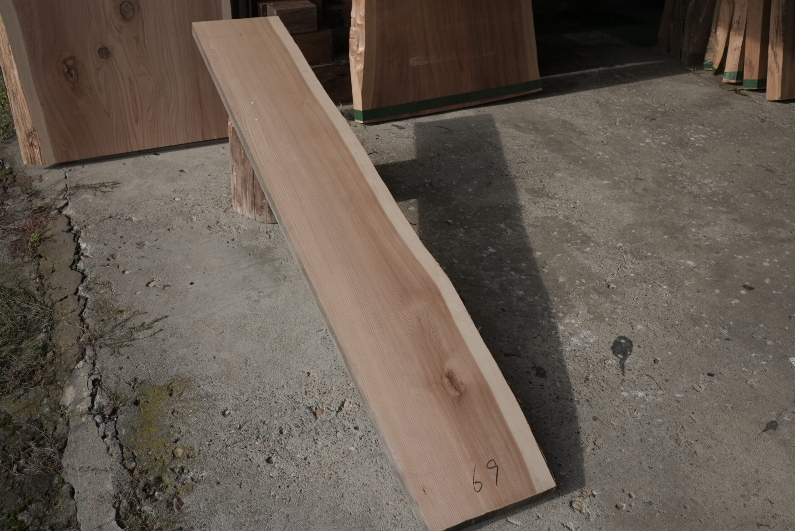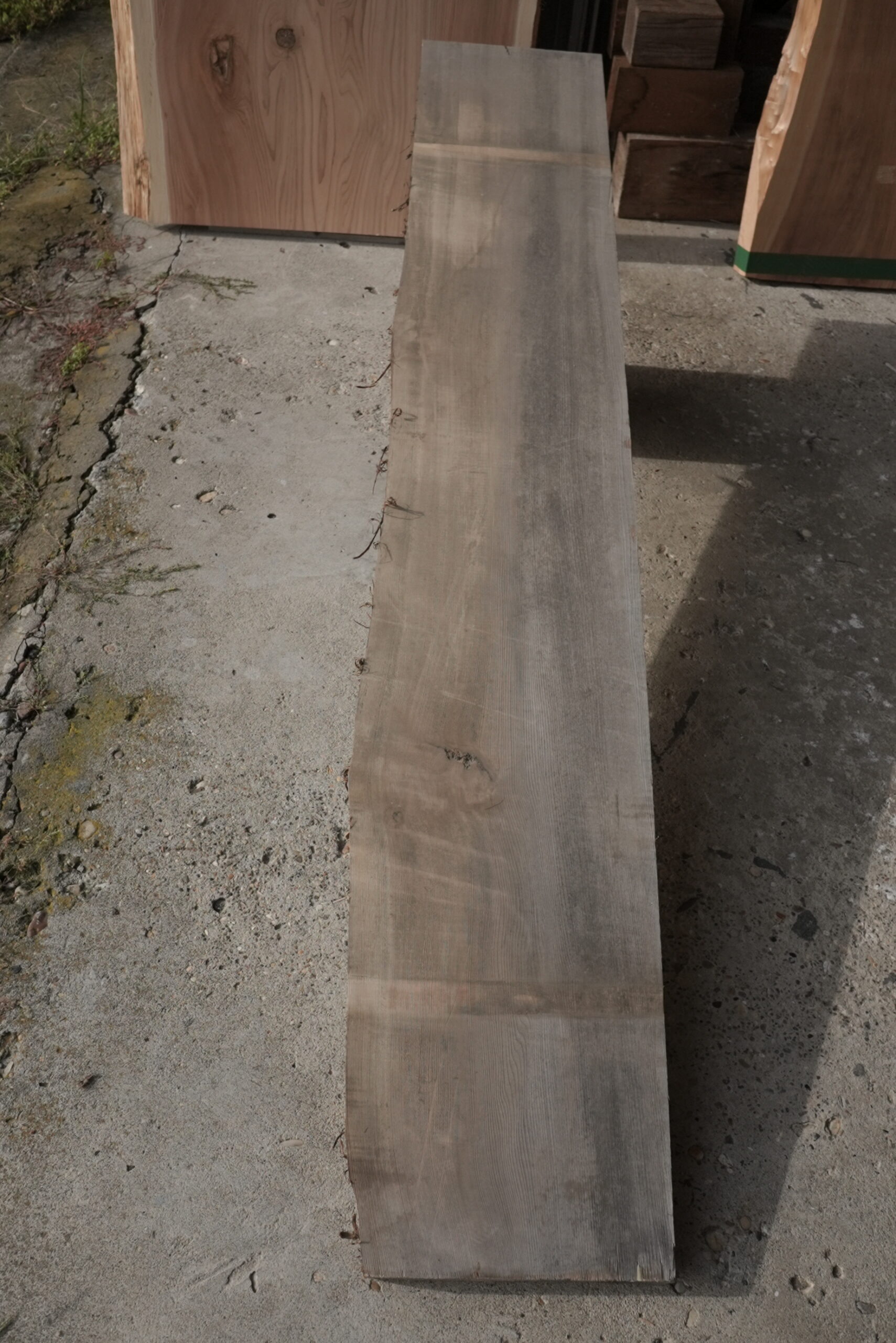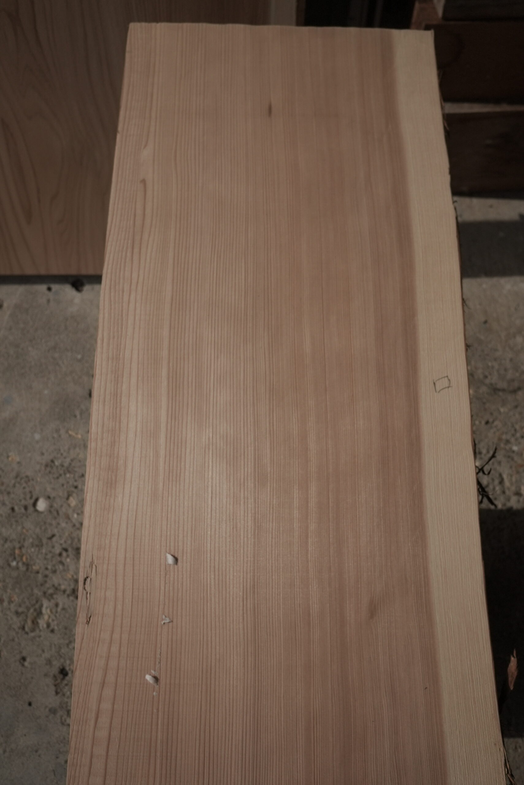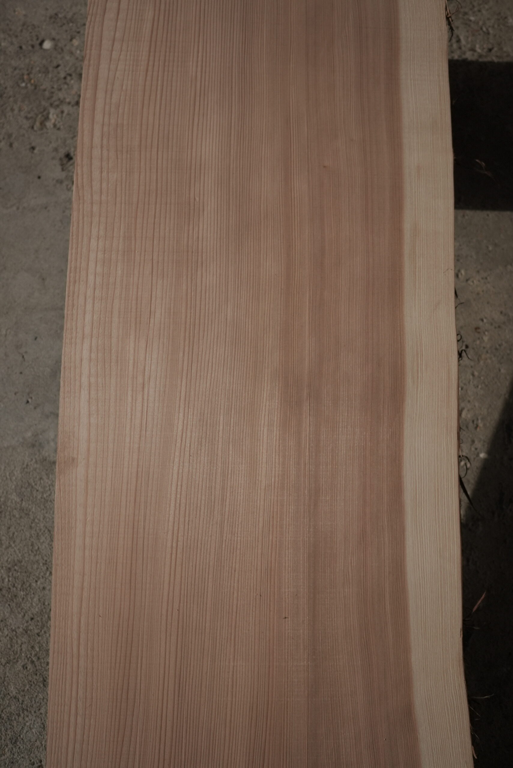 天然杉柾一枚板です。この幅の柾一枚板は中々出て来ません。大変貴重材です。片耳はストレートにカットしてあります。ベンチ、キッチンカウンター、棚板等ディスプレーにいかがでしょうか。当店ではプレーナー掛け(塗装前までの仕上げ)オーダー加工(塗装塗布)も承っております。お気軽にお問い合わせ下さい。