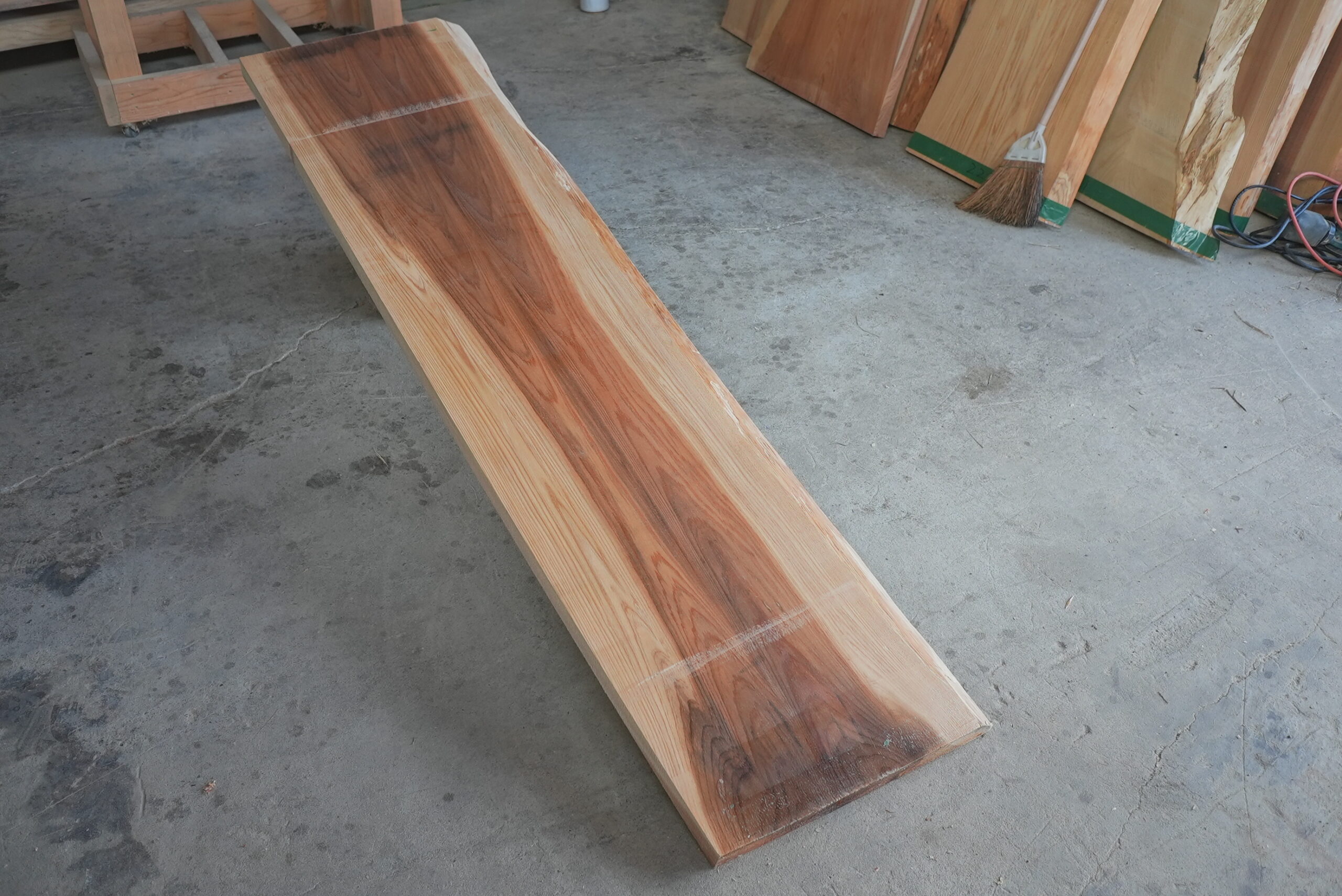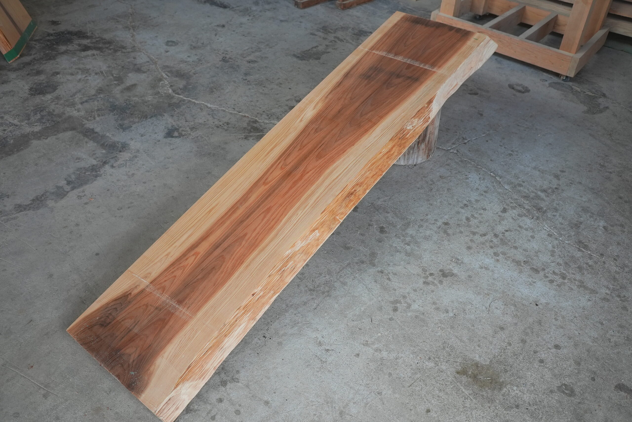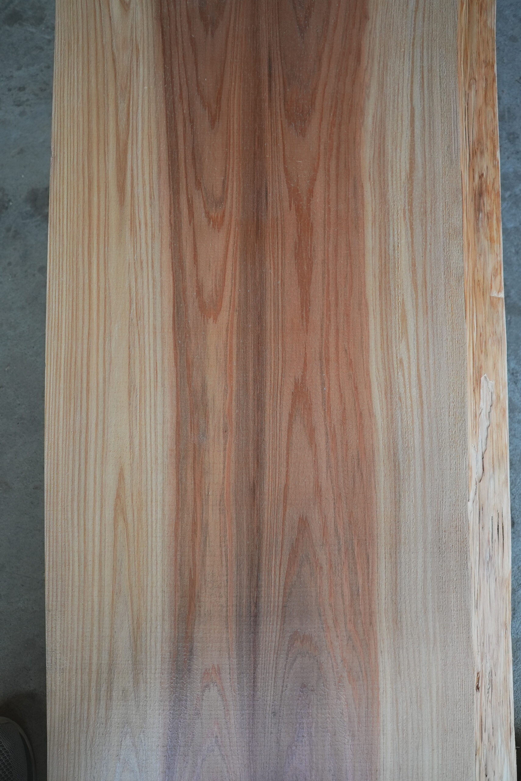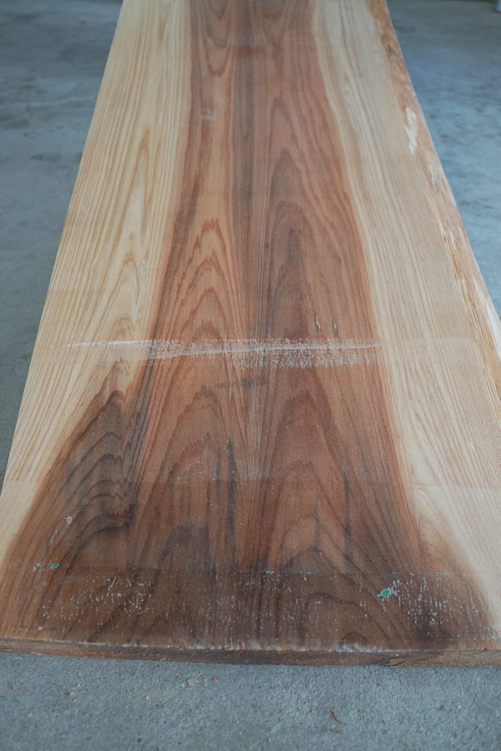 天然杉片耳一枚板です。片耳はストレートにカットしてあります。このままのサイズでワークデスク、キッチンカウンター、棚板等ディスプレーにいかがでしょうか。当店ではプレーナー掛け(塗装前までの仕上げ)オーダー加工(塗装塗布)も承っております。お気軽にお問い合わせ下さい。